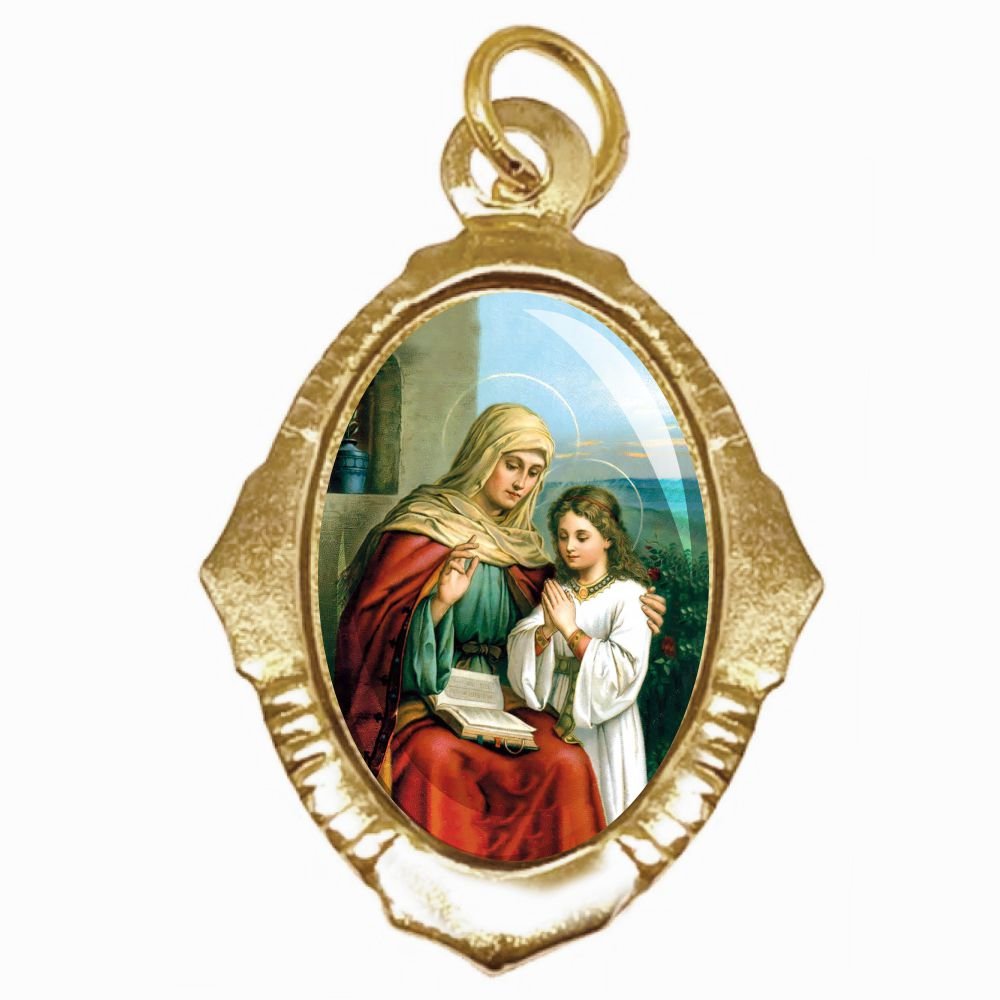 Cem unidades de medalha em chapa, com adesivo do santo de devoção em impressão digital e resinado em resina epoxi.