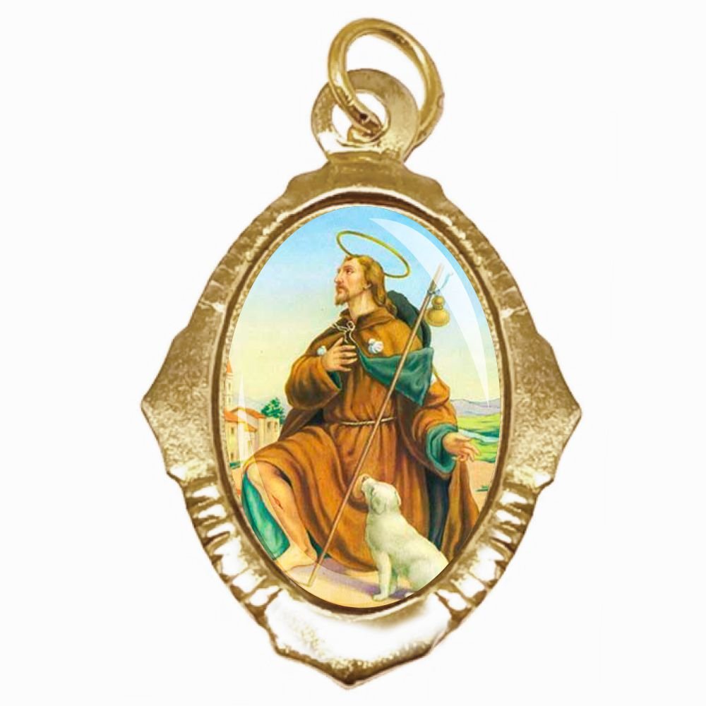 Cem unidades de medalha em chapa, com adesivo do santo de devoção em impressão digital e resinado em resina epoxi.