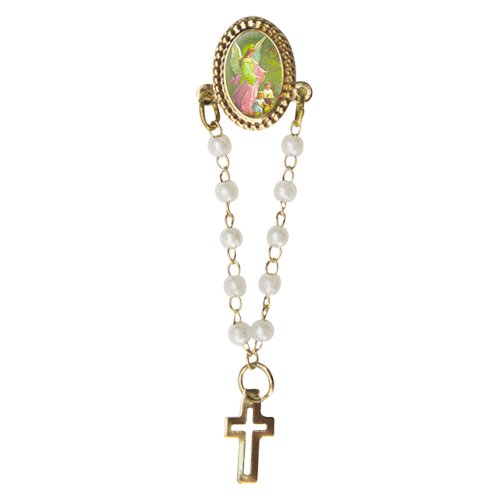 Boton Oval do Anjo da Guarda com mini terço em pérola.