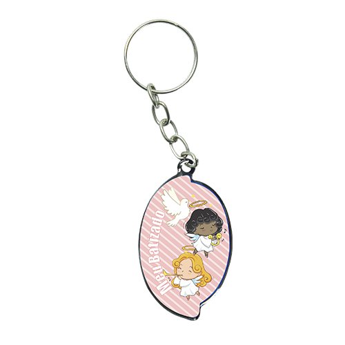 12 Unid - Chaveiro Chapa Aba Batismo Rosa