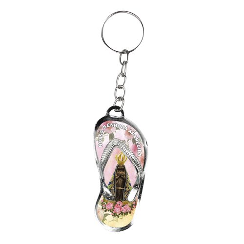 12 Unid - Chaveiro Chapa Chinelo Nossa Senhora Aparecida Flores
