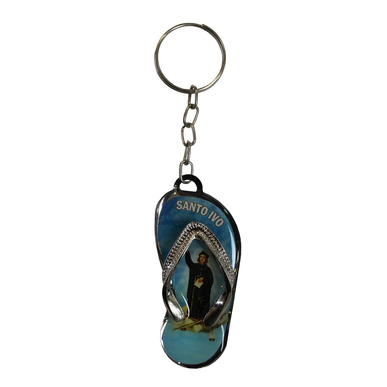 Belíssimo chaveiro no formato de chinelo do Santo Ivo.