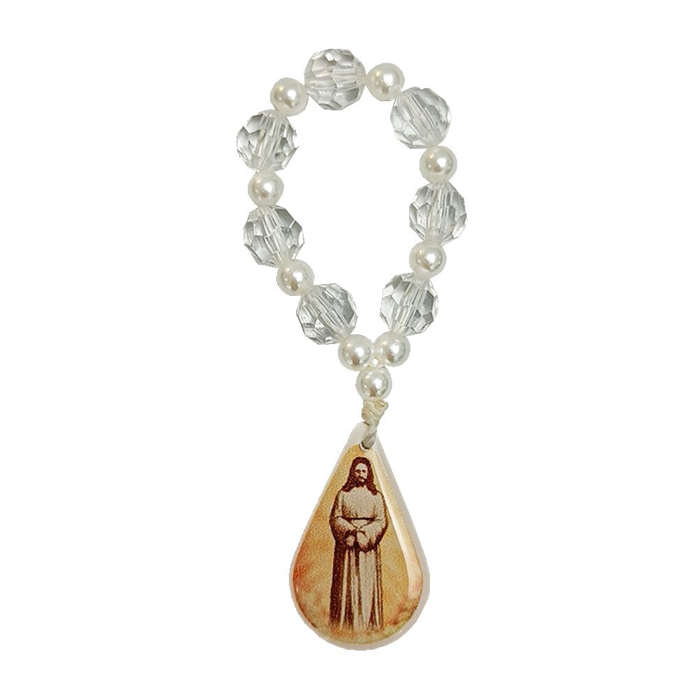Dezena de Dedo Nossa Senhora das Lágrimas e Jesus Manietado Conta Transparente - 8 mm