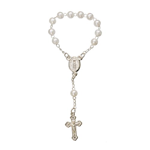 Kit Com 12 Mini Terços Para Lembrancinhas na Cor Branca. Produzidas em mini Pérola medindo cerca de 5mm cada conta aproximadamente.