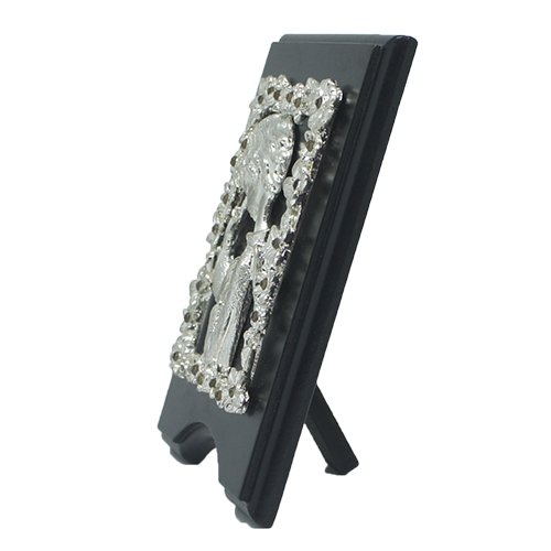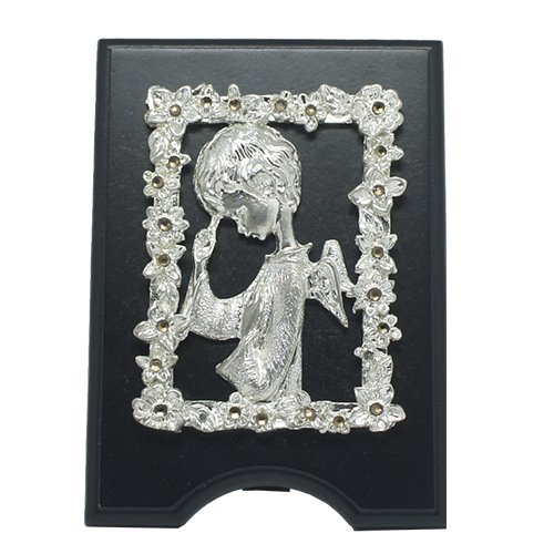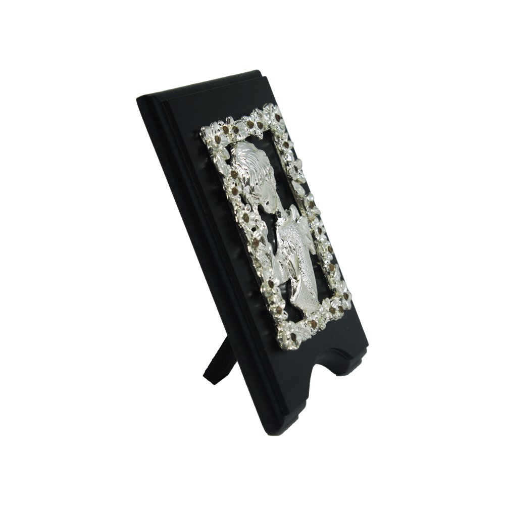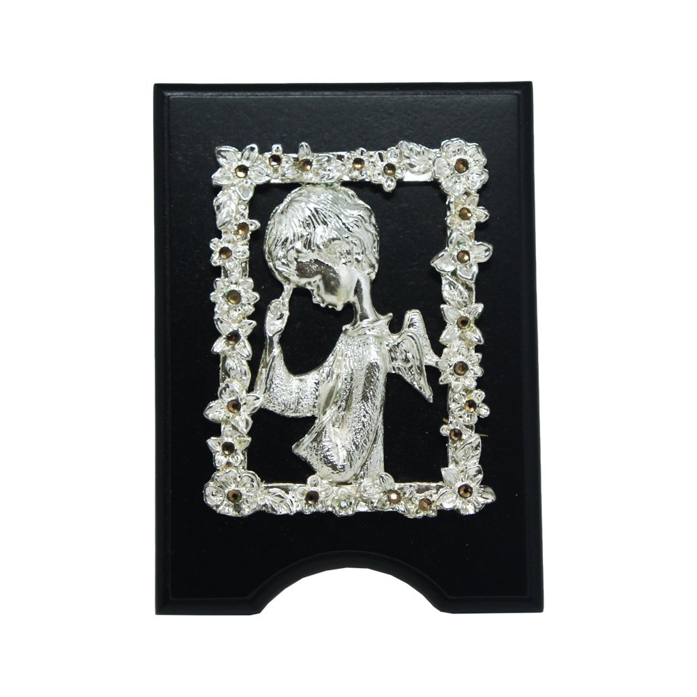 Adorno em madeira escura com anjo adornado alto relevo em prata.