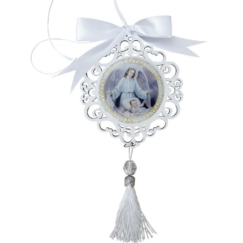 Adorno para berço ou porta no tema Anjo da Guarda produzido em MDF branco detalhes do corte em arabesco com laço, anjo e pompom na cor branca, acabamento em resina. Peça em MDF medindo aproximadamente 11cm de altura e 10cm de largura, totalizando 25cm de altura somado ao pompom.Fabricação própria.