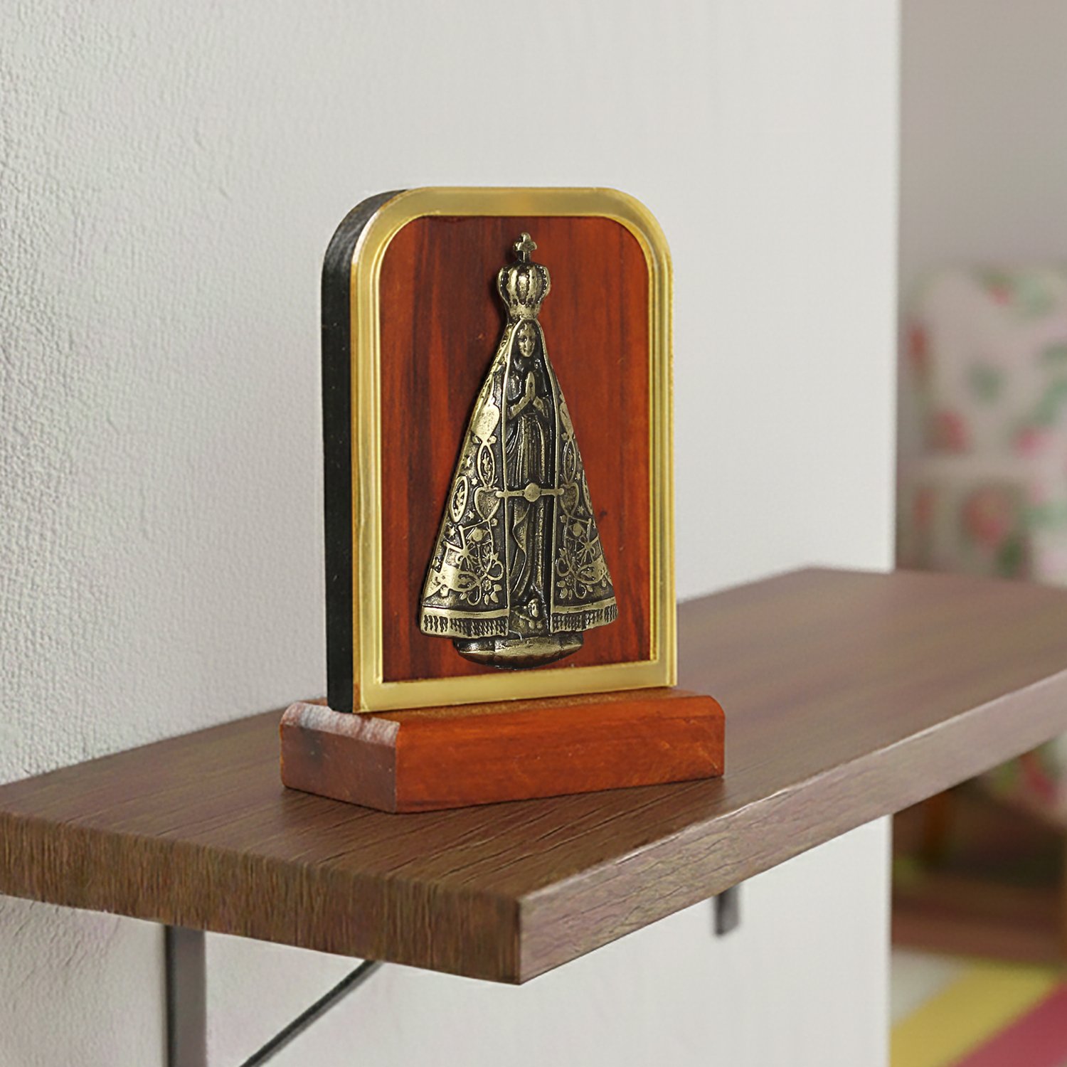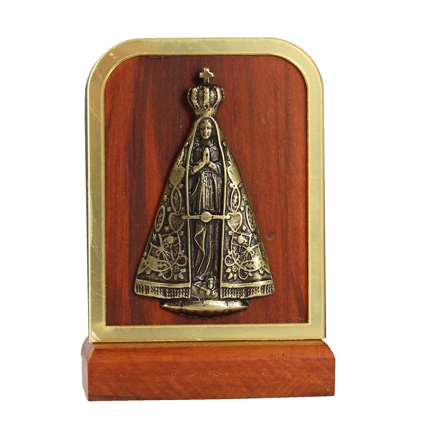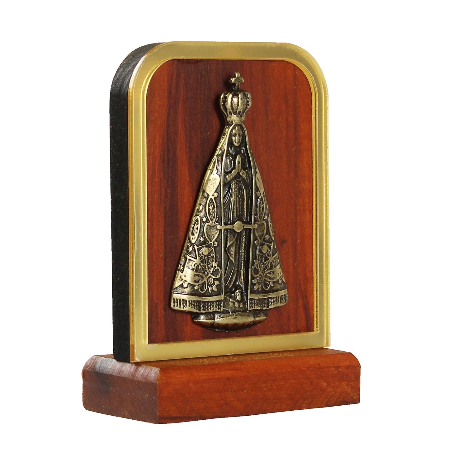 Adorno de Madeira de Nossa Senhora Aparecida Metal Oval Detalhe Acrílico