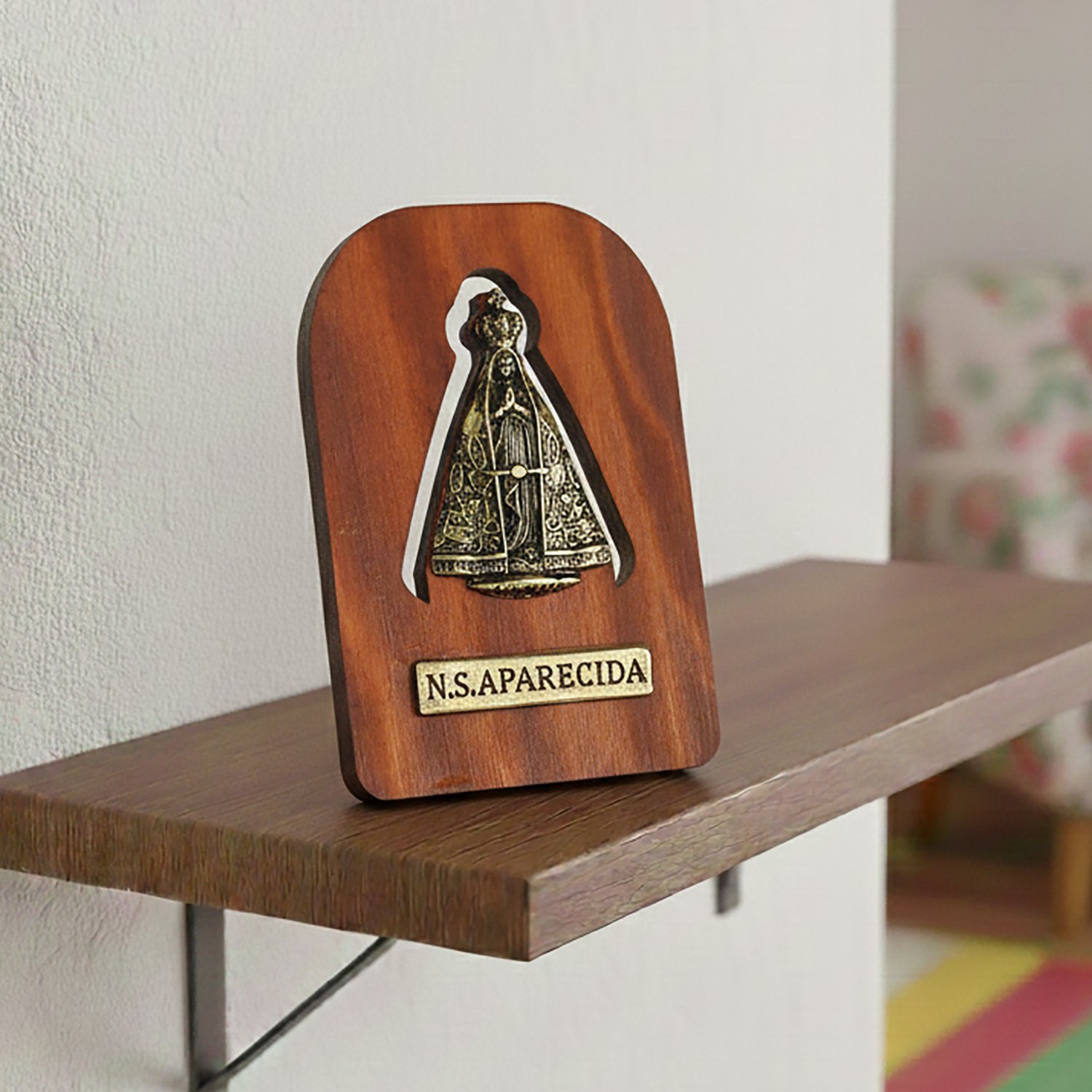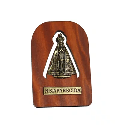 Adorno de Madeira Nossa Senhora Aparecida Metal Ouro Velho