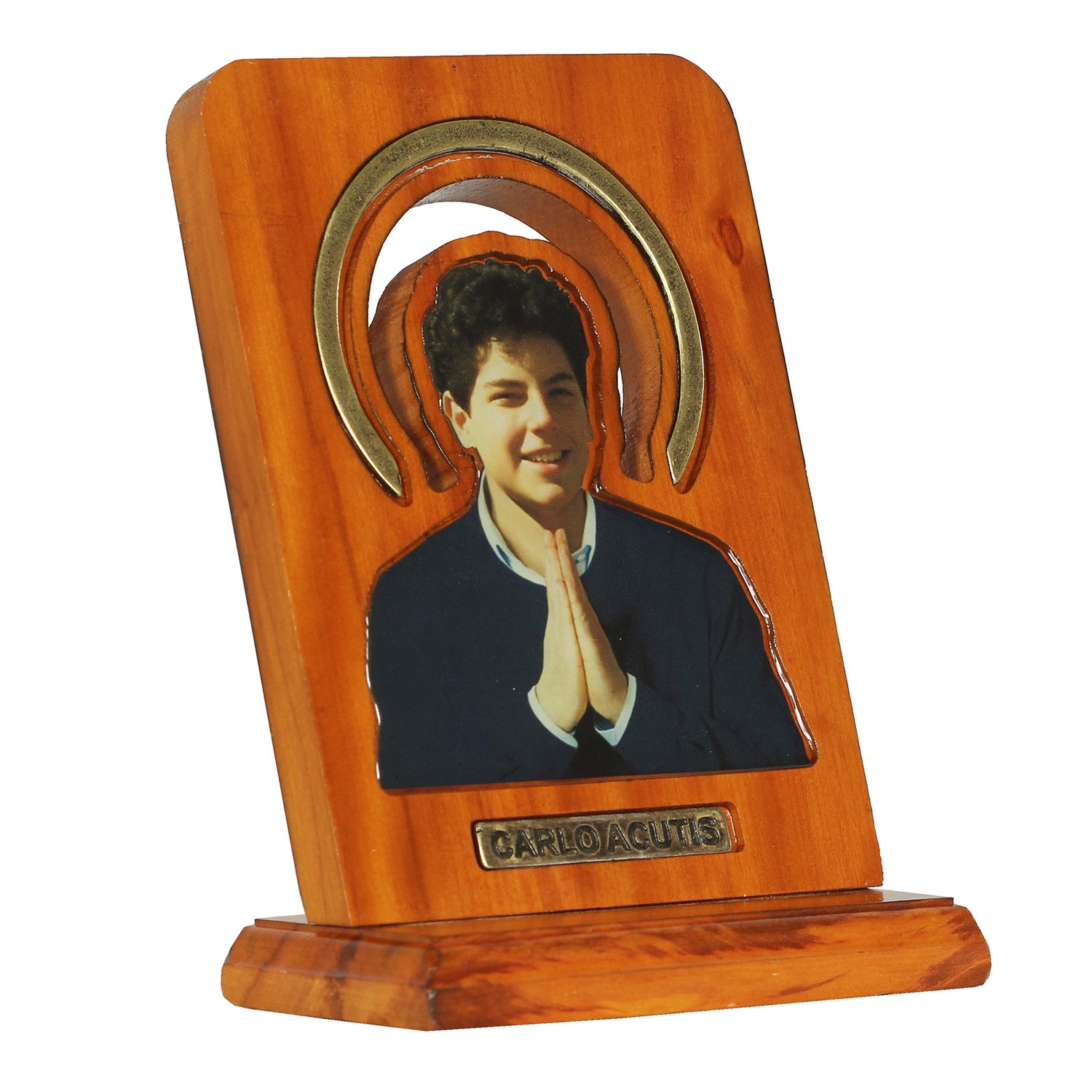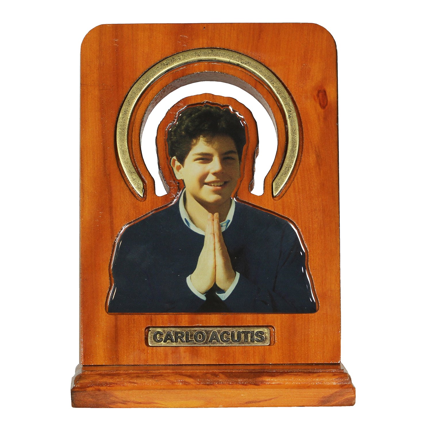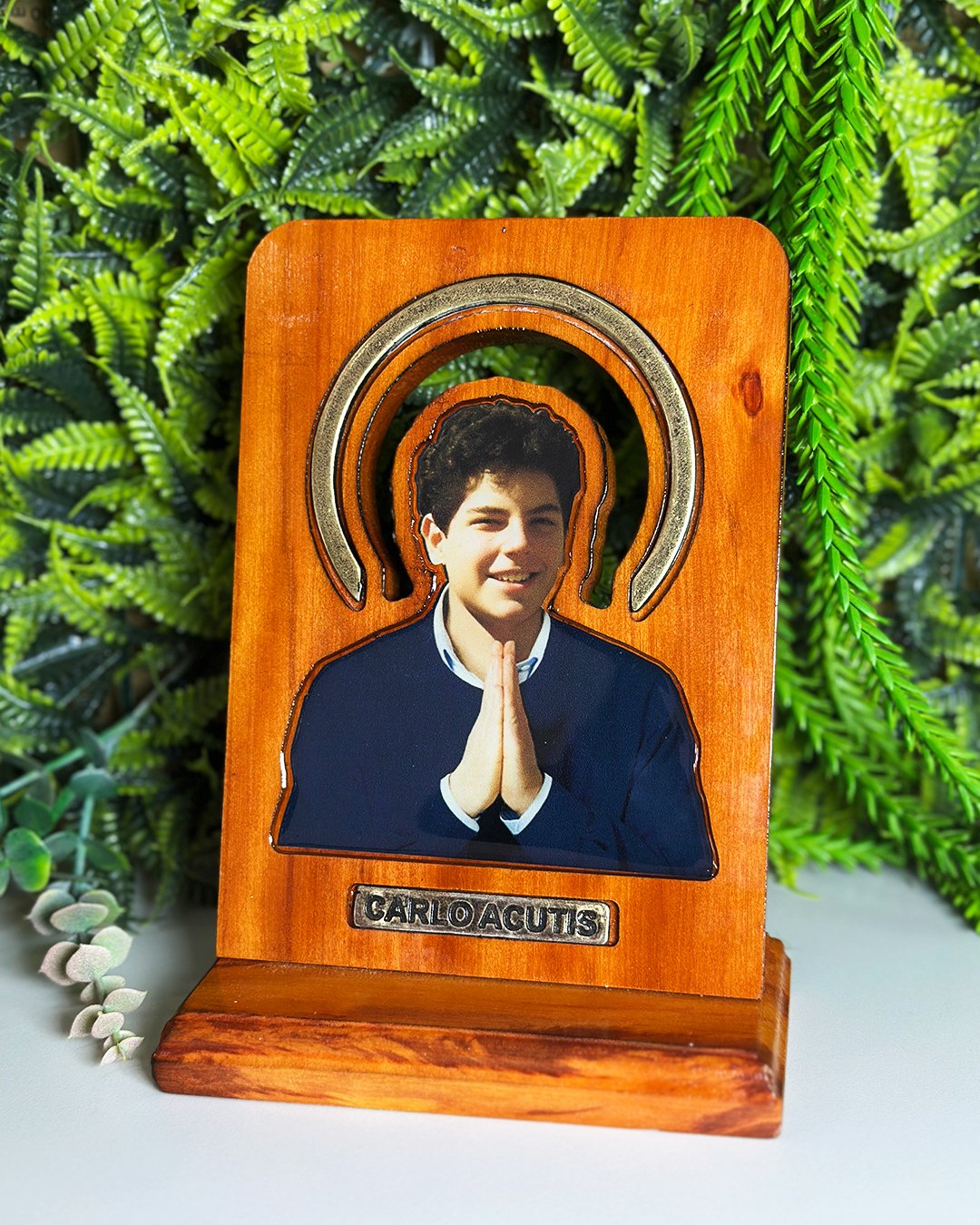 Adorno de Mesa Carlo Acutis Resinado Ouro Velho - 20 x 14 cm