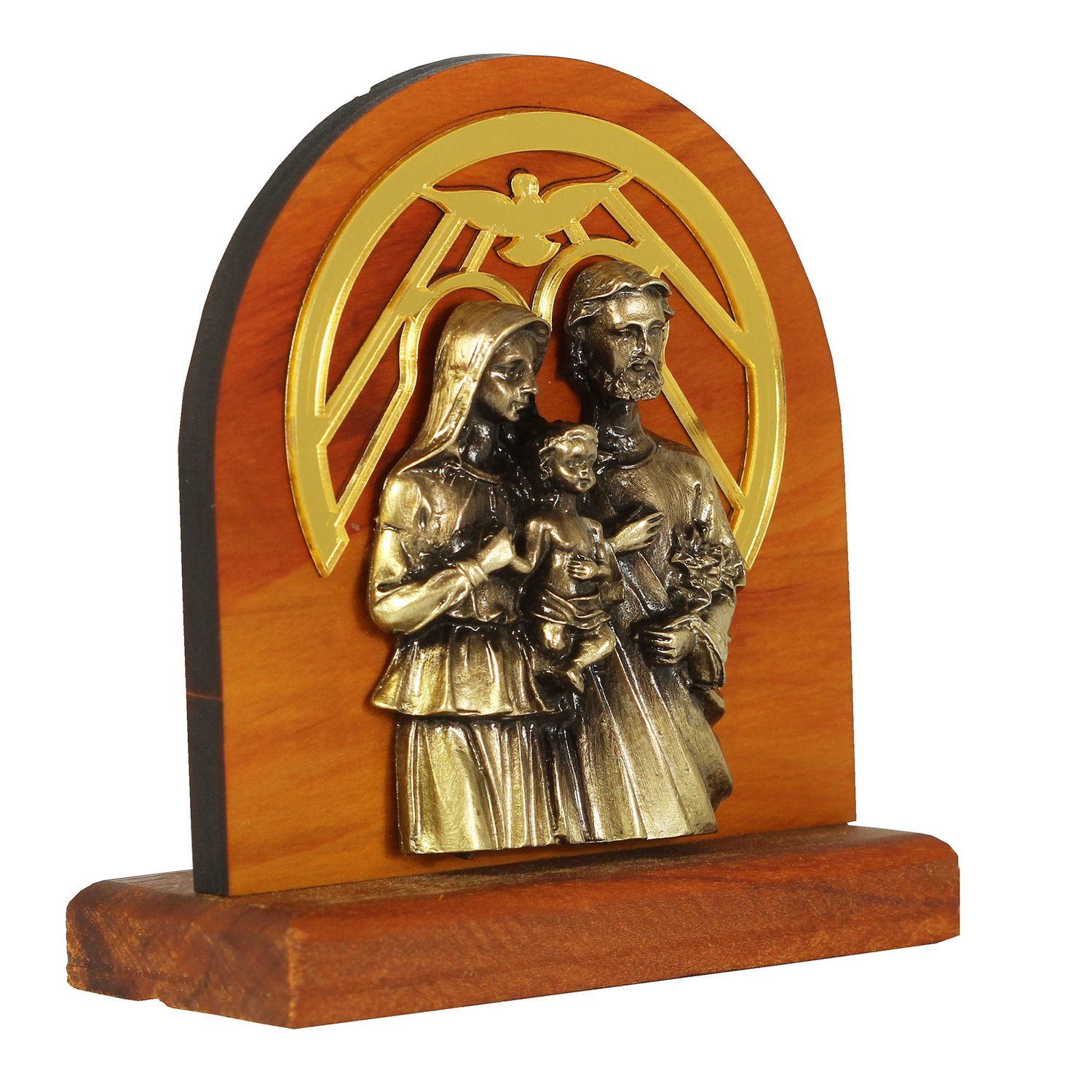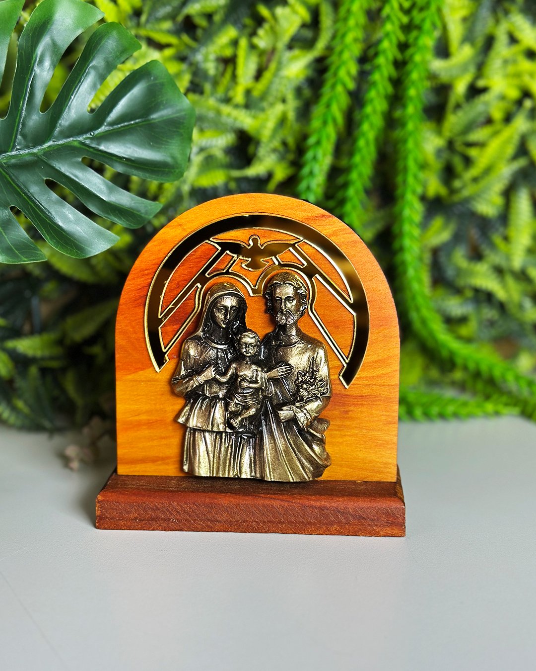 Adorno de Mesa Sagrada Família Madeira com Acrílico - 14 x 12 cm