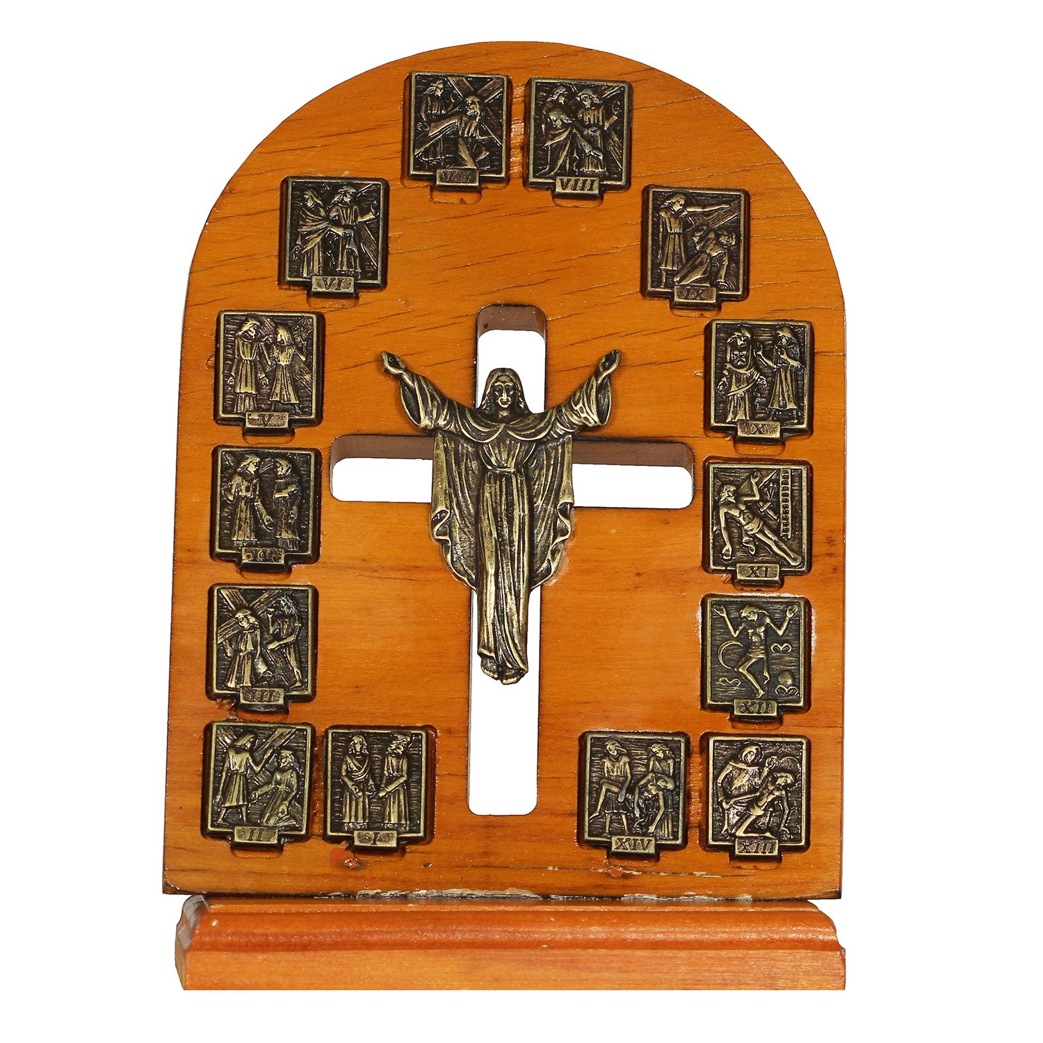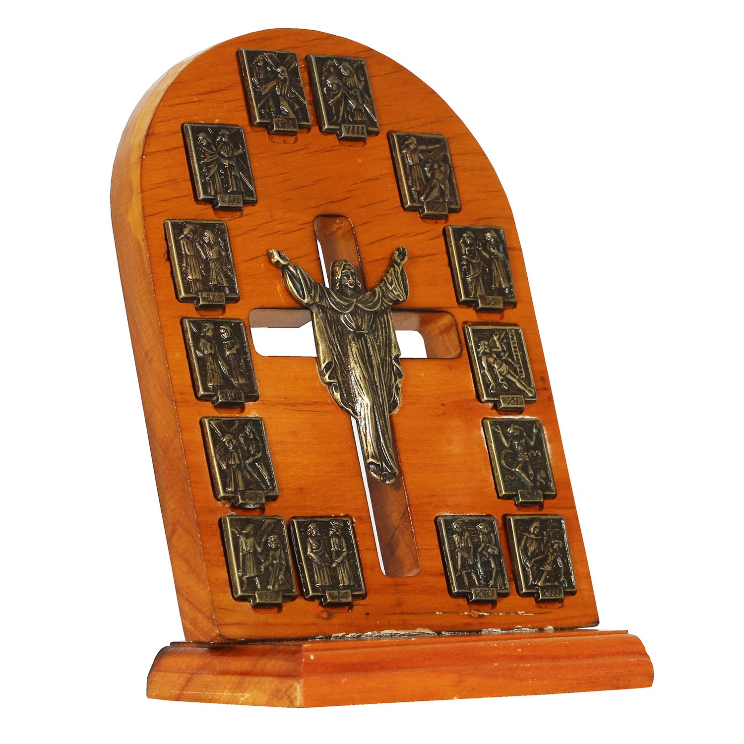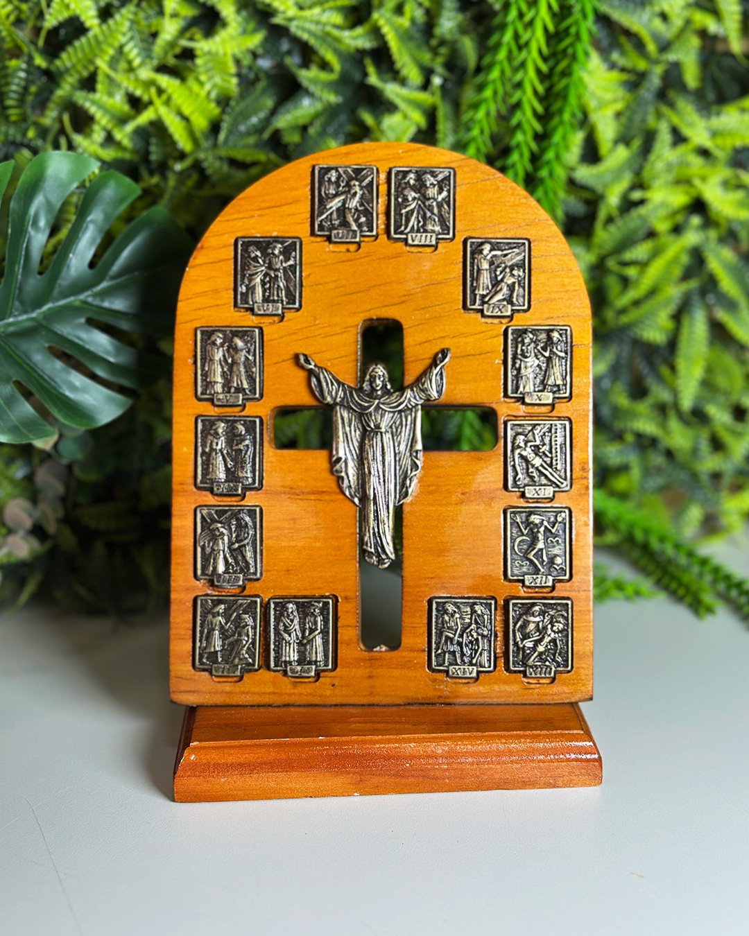 Adorno de Mesa Via Sacra e Cristo Ressuscitado Ouro Velho - 23 x 15 cm