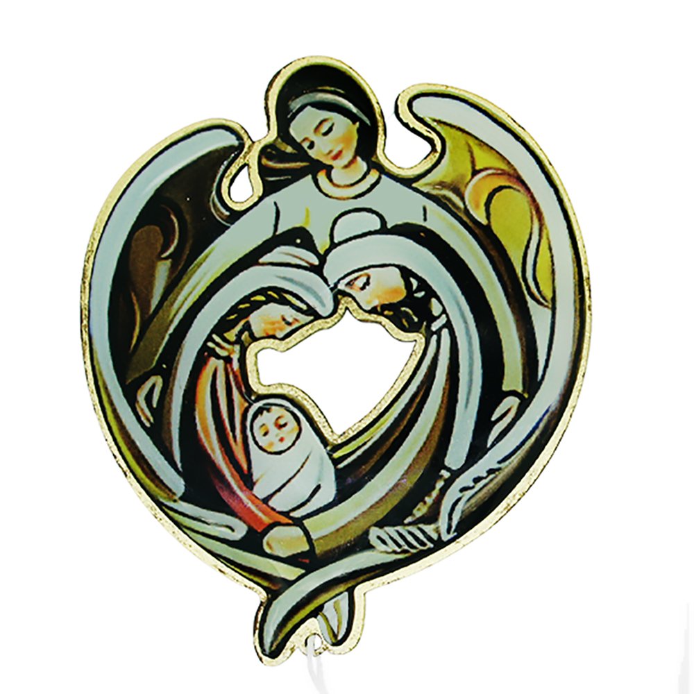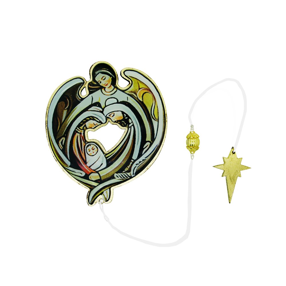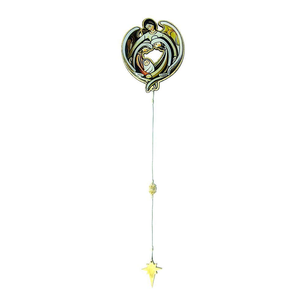 Adorno de Porta Sagrada Família com Anjo, cordão dourado com estrela em MDF dourada.