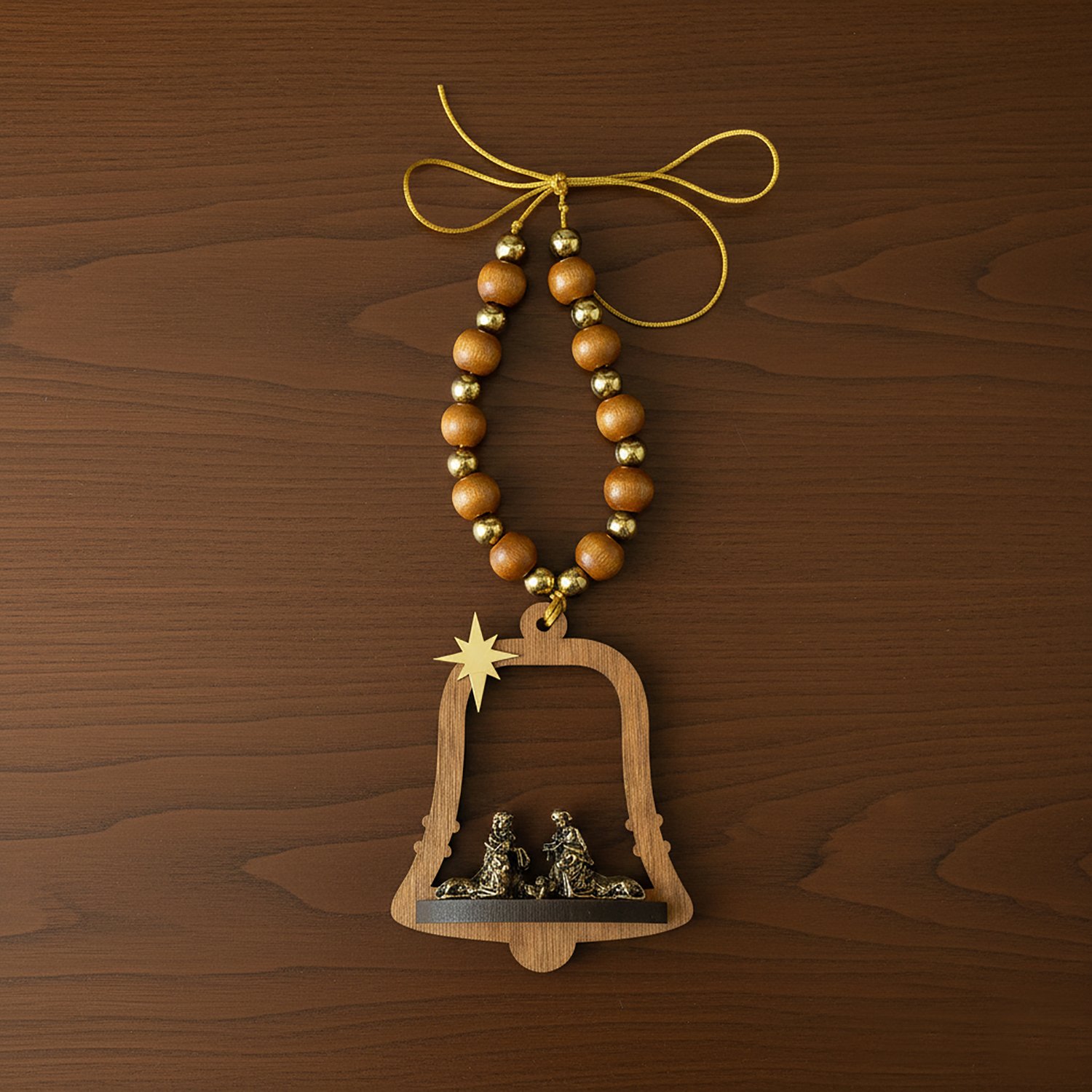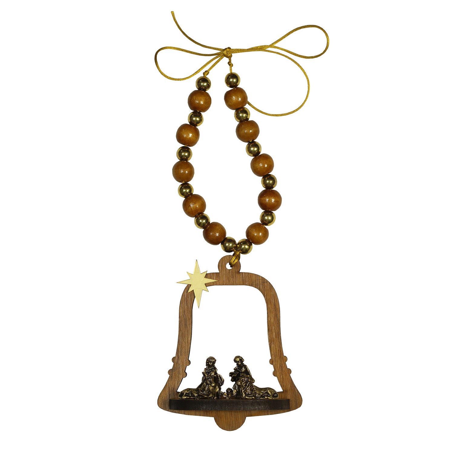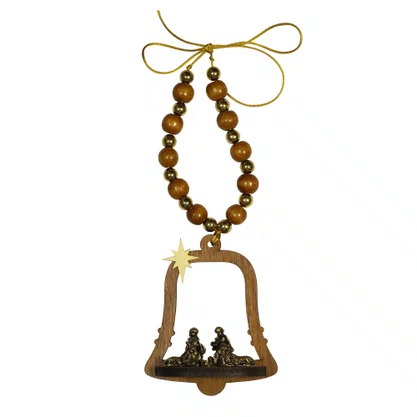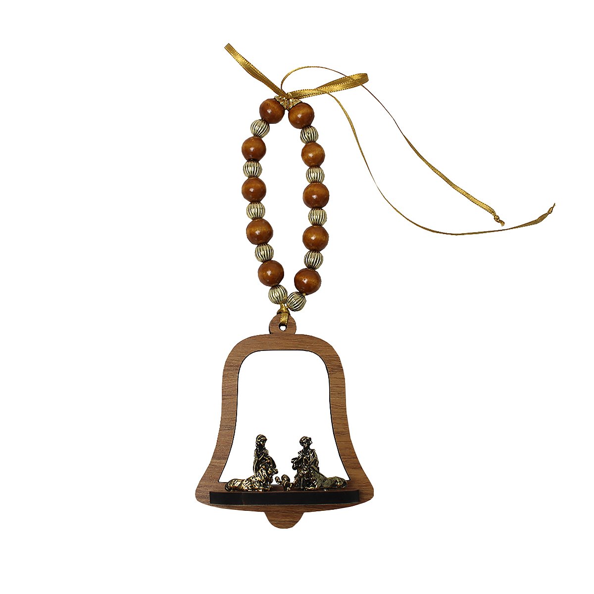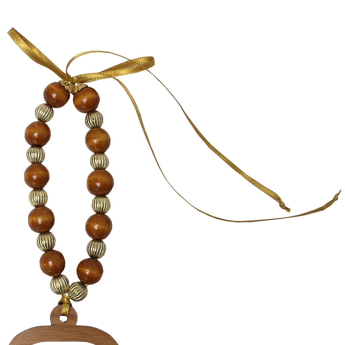 Adorno de Porta Sino Sagrada Família Contas Marrom e Dourado