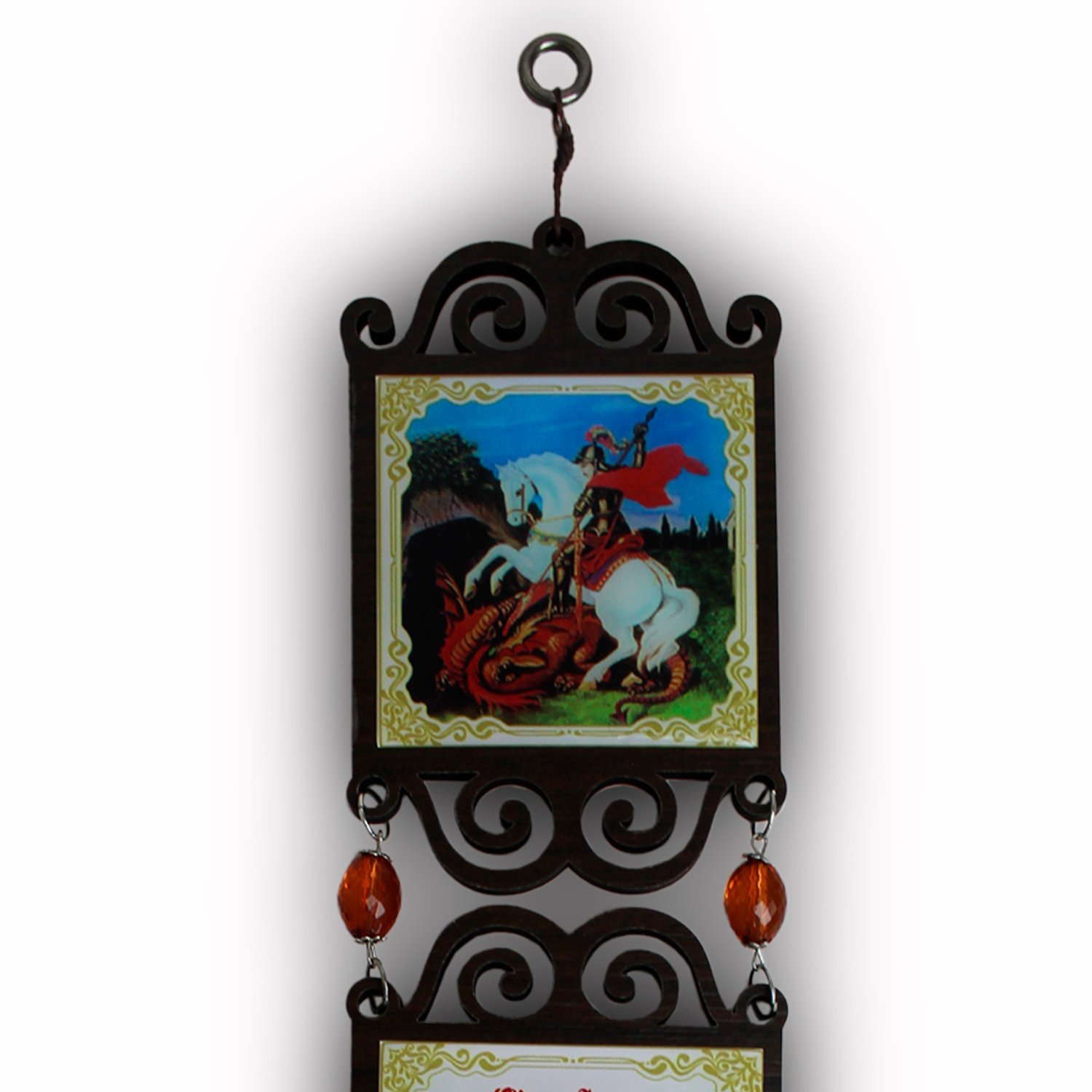 Adorno de porta duplo quadrado fabricado em MDF com bordas arabescas, revestido com adesivo resinado e acabamento com pompom.