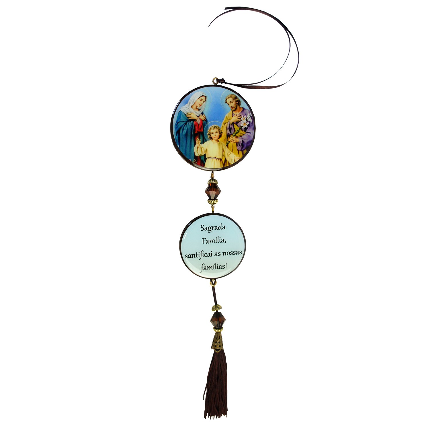 Adorno de porta duas medalhas fabricado em MDF revestido com adesivo resinado e acabamento com pompom.