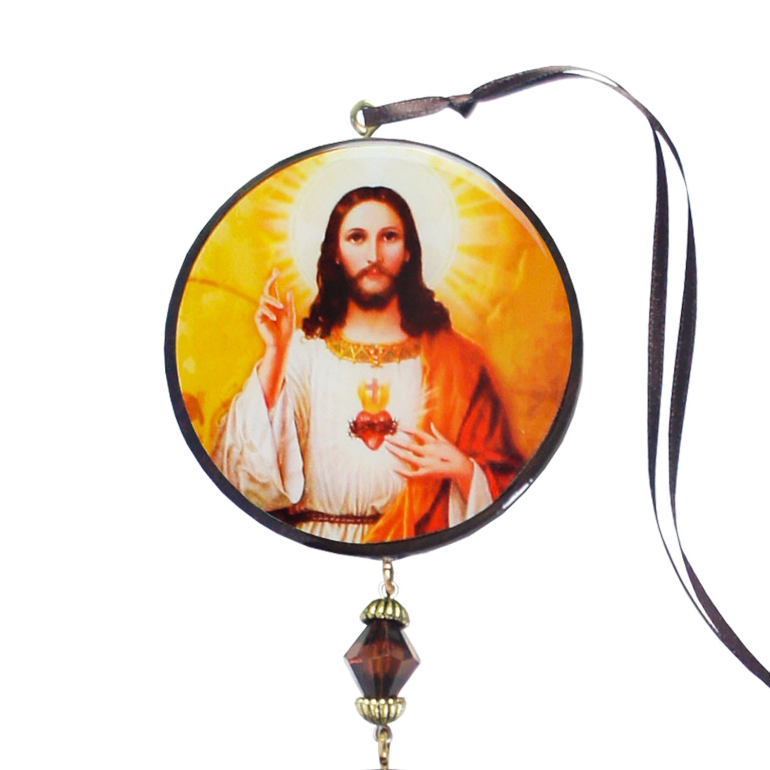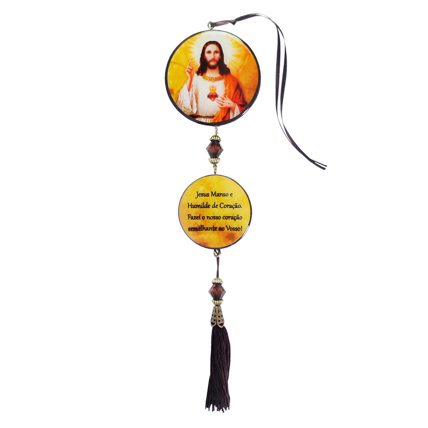 Adorno Duplo Redondo Sagrado Coração de Jesus em MDF