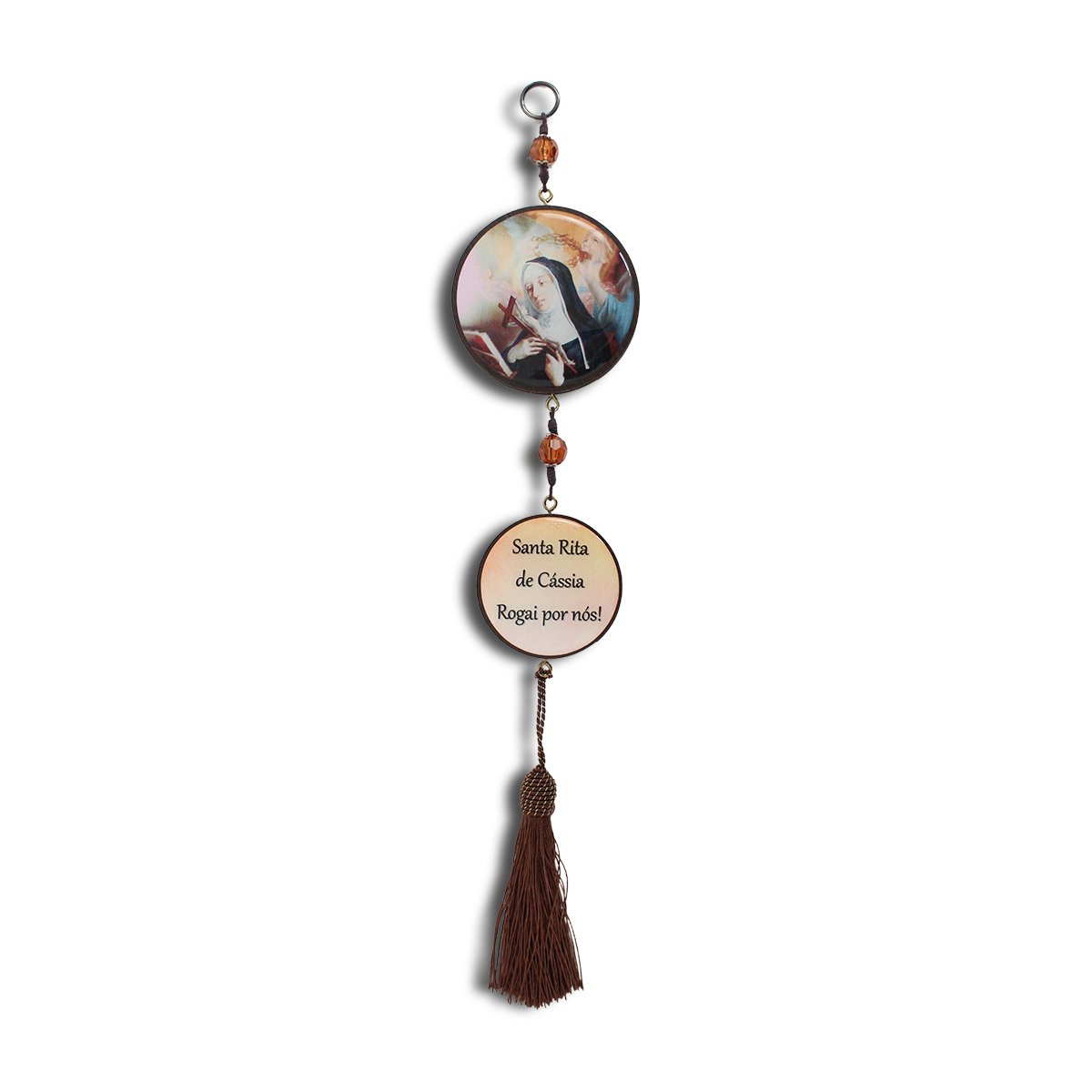 Adorno de porta duas medalhas fabricado em MDF revestido com adesivo resinado e acabamento com pompom.