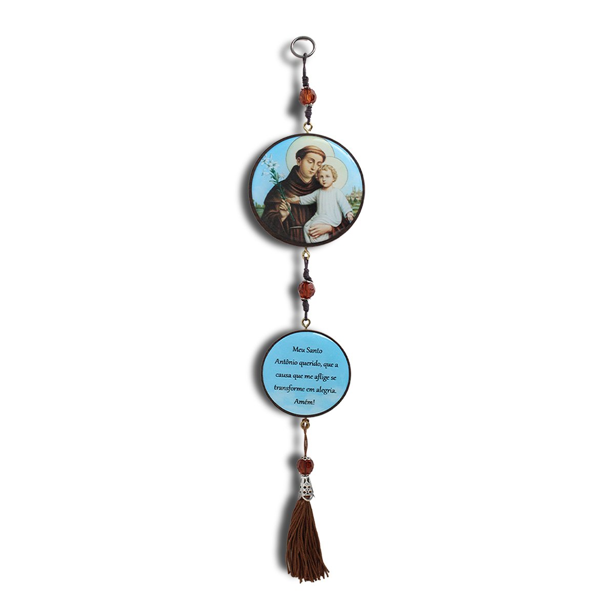 Adorno de porta duas medalhas fabricado em MDF revestido com adesivo resinado e acabamento com pompom.