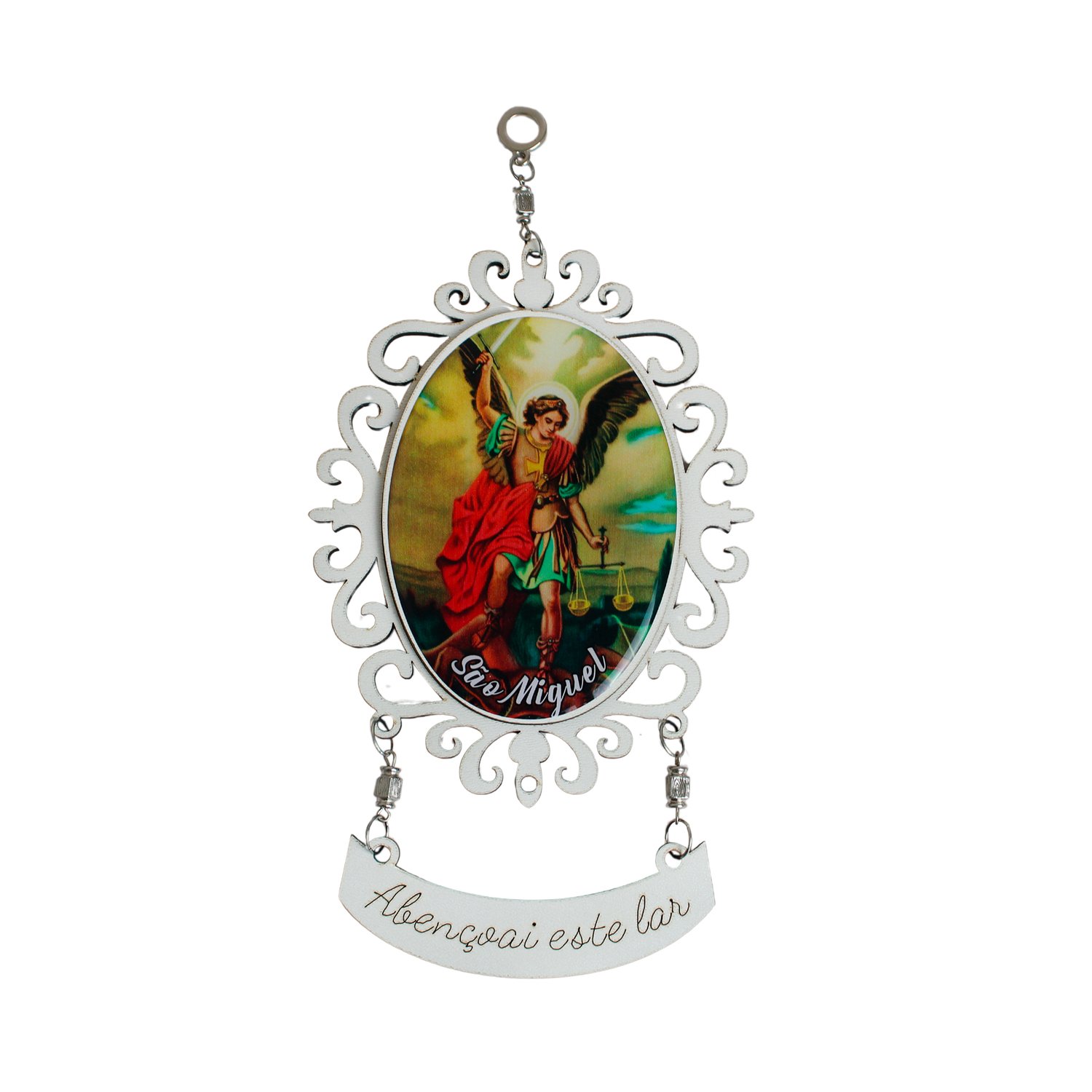 Adorno Oval com Placa "Abençoai este lar" São Miguel Arcanjo em MDF