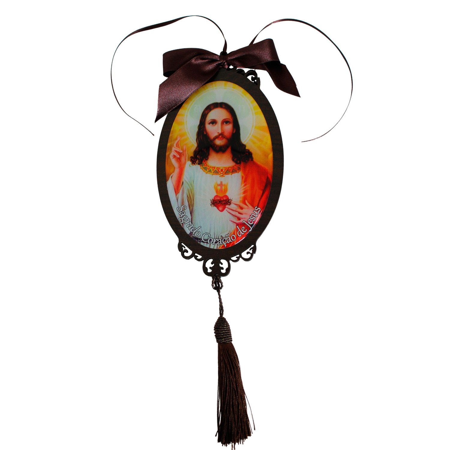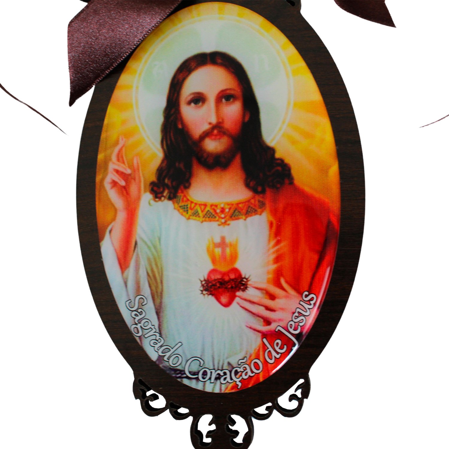 Adorno Oval Sagrado Coração de Jesus em MDF