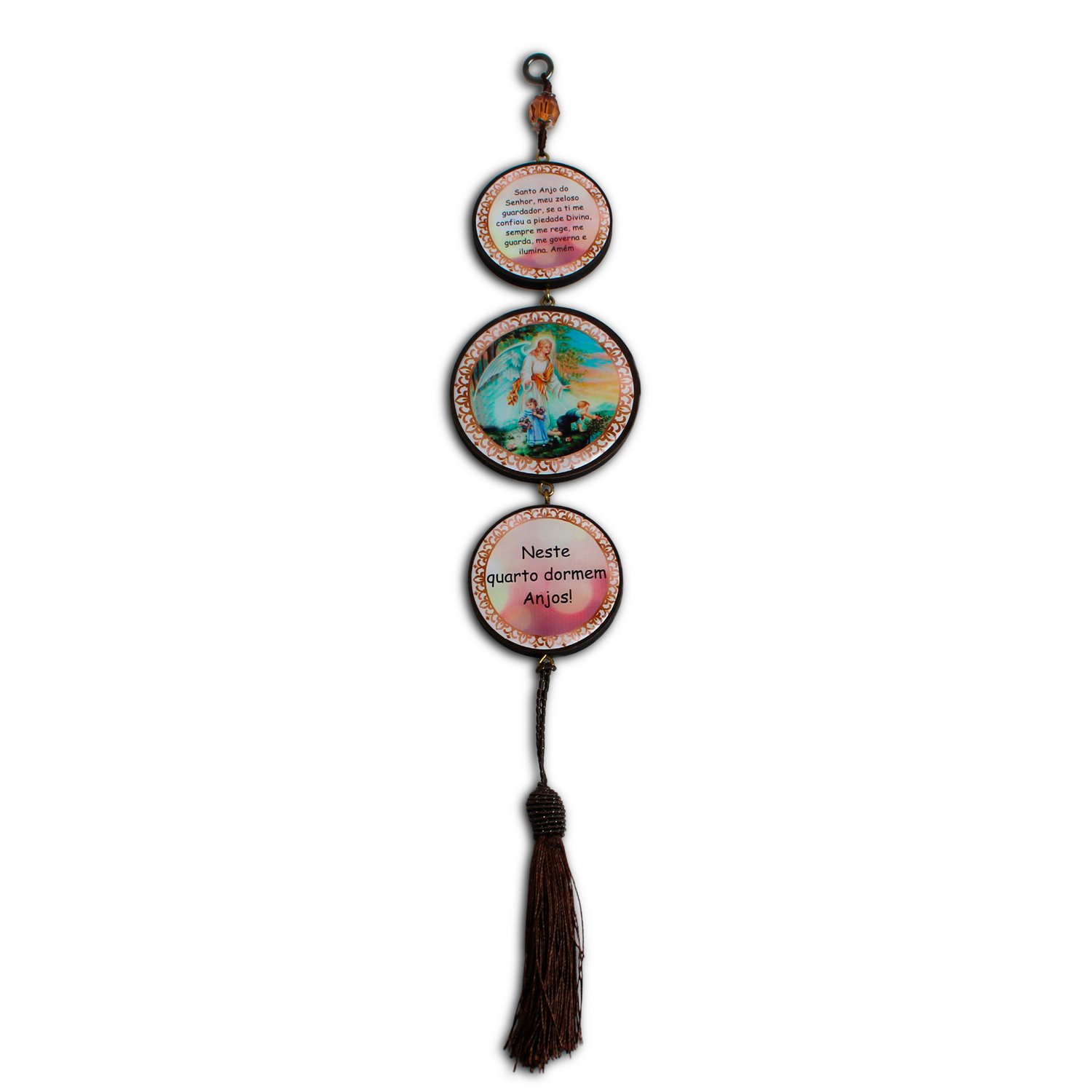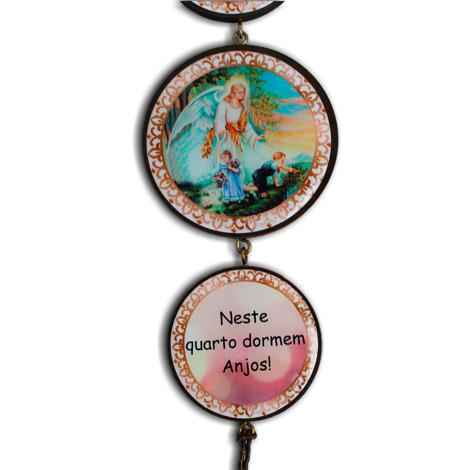 Adorno Triplo Redondo Anjo da Guarda em MDF