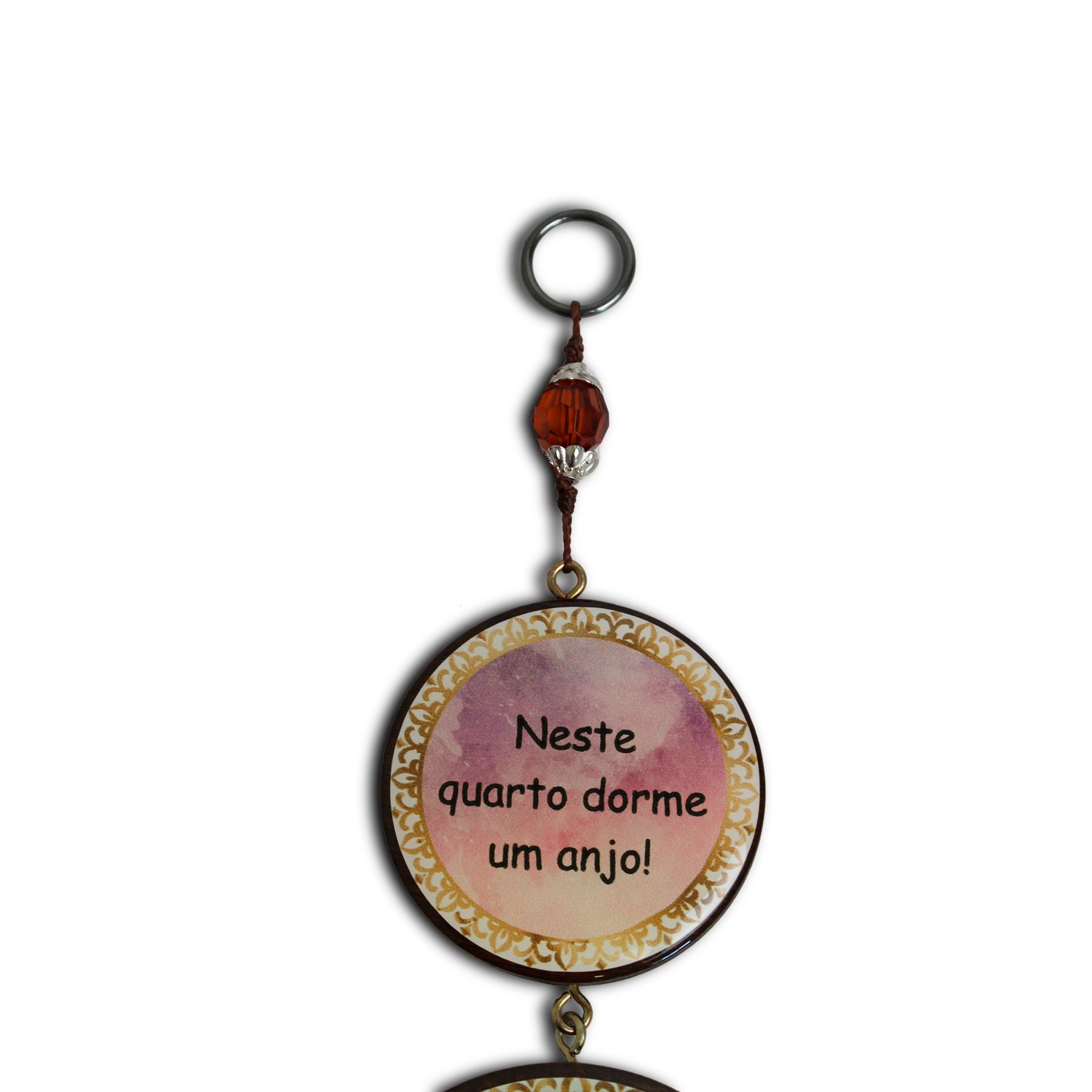 Adorno Triplo Redondo Anjo da Guarda Rosa em MDF