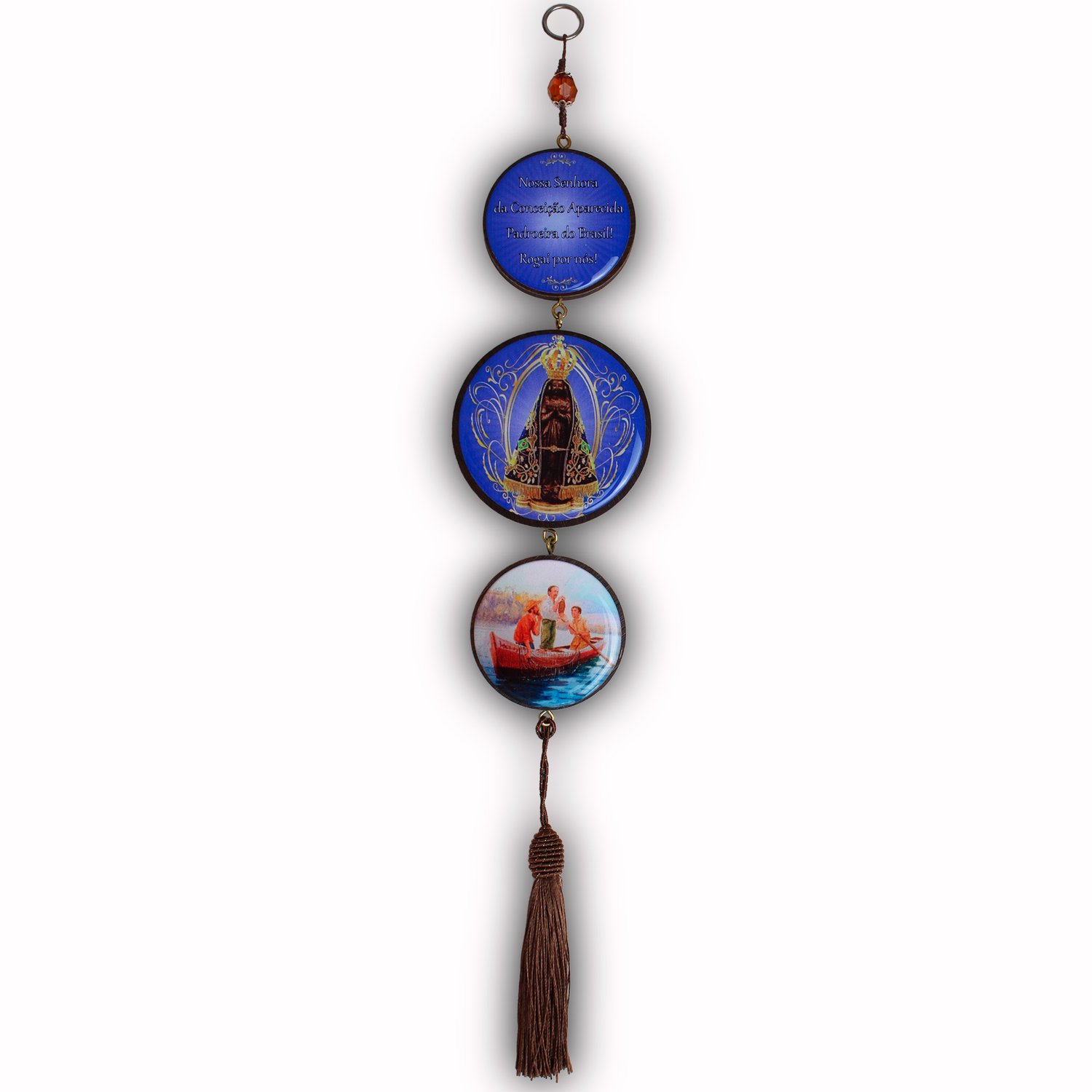 Adorno Triplo Redondo Nossa Senhora Aparecida com Pescadores em MDF
