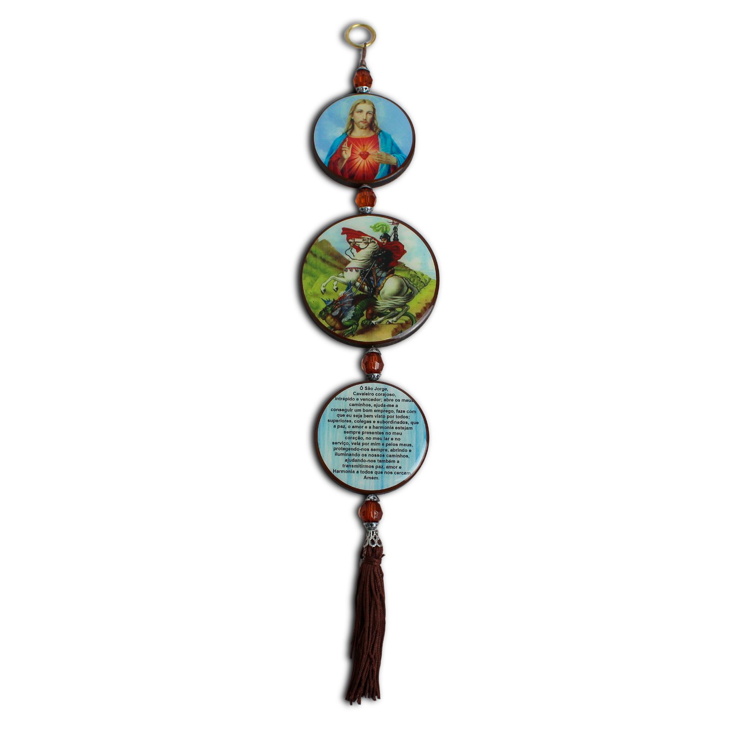 Adorno de porta três medalhas fabricado em MDF revestido com adesivo resinado e acabamento com pompom.