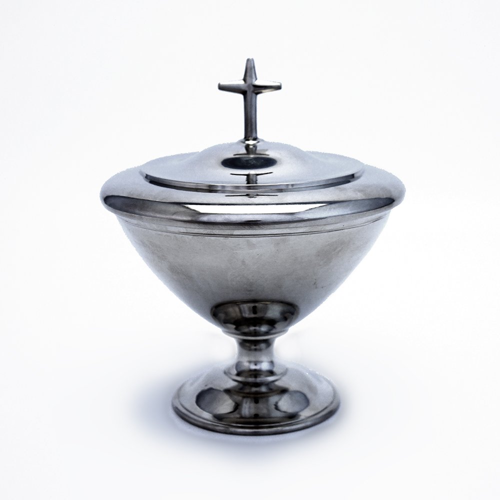 Âmbula ou cibório. É semelhante ao cálice mas contém uma tampa. Nela colocam-se as hóstias para a distribuição e após a Missa são guardadas no sacrário . Podem ter diversas formas. São geralmente pratas ou douradas, e geralmente de material oxidável e dentro dourada.Usadas nas celebrações para colocar as partículas (hóstias), e levadas ao altar no momento do ofertório.