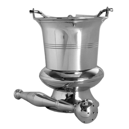 O aspersório é um instrumento usado para aspergir os fiéis com água benta e a caldeira é a vasilha onde se coloca a água benta usada para aspergir os fiéis.