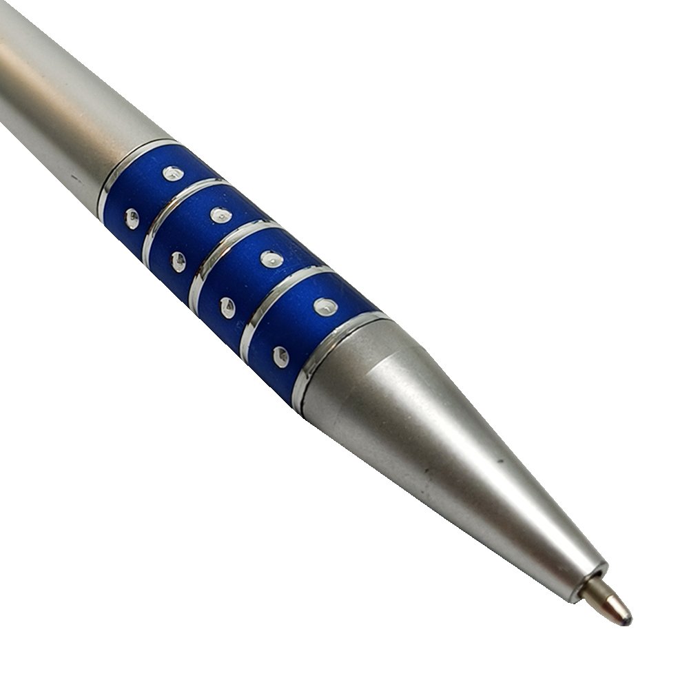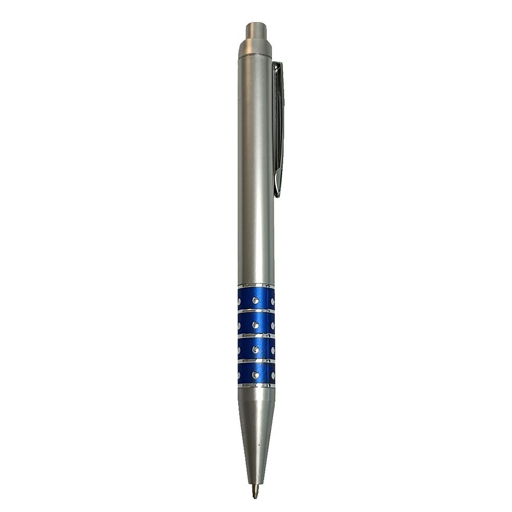 Caneta Esferográfica Prata e Azul Detalhes em Strass