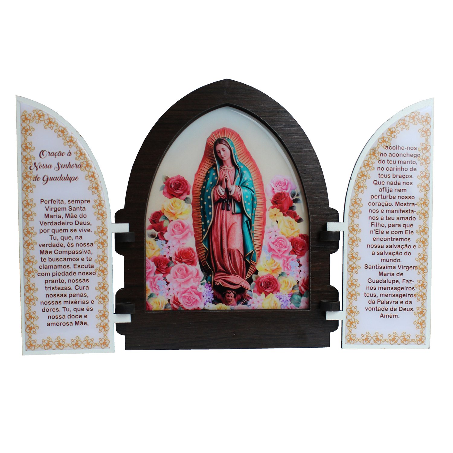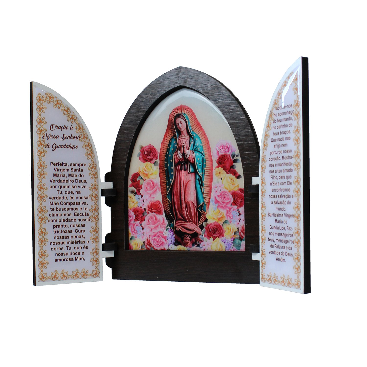 Capela produzida em Mdf revestido 6 mm - Sistema com porta que pode ser aberta e fechada - Nossa Senhora Guadalupe e oração resinadas. FABRICAÇÃO PRÓPRIA