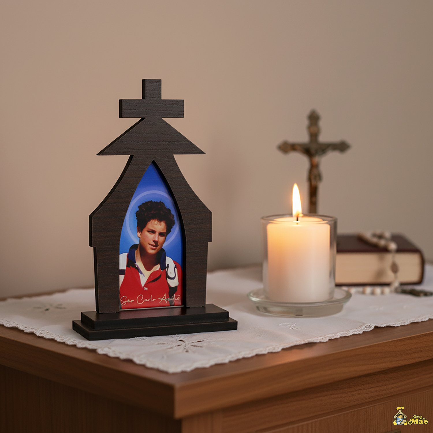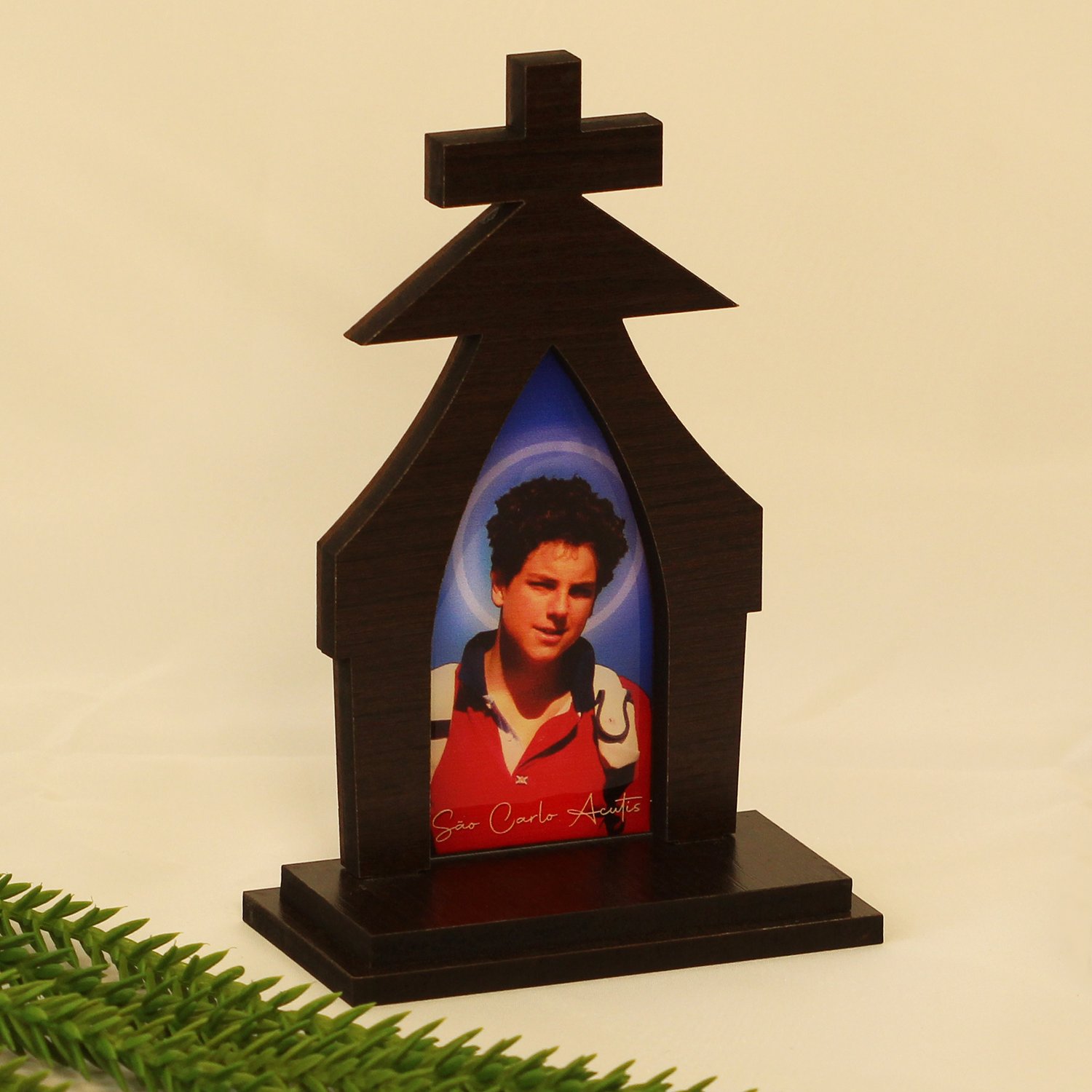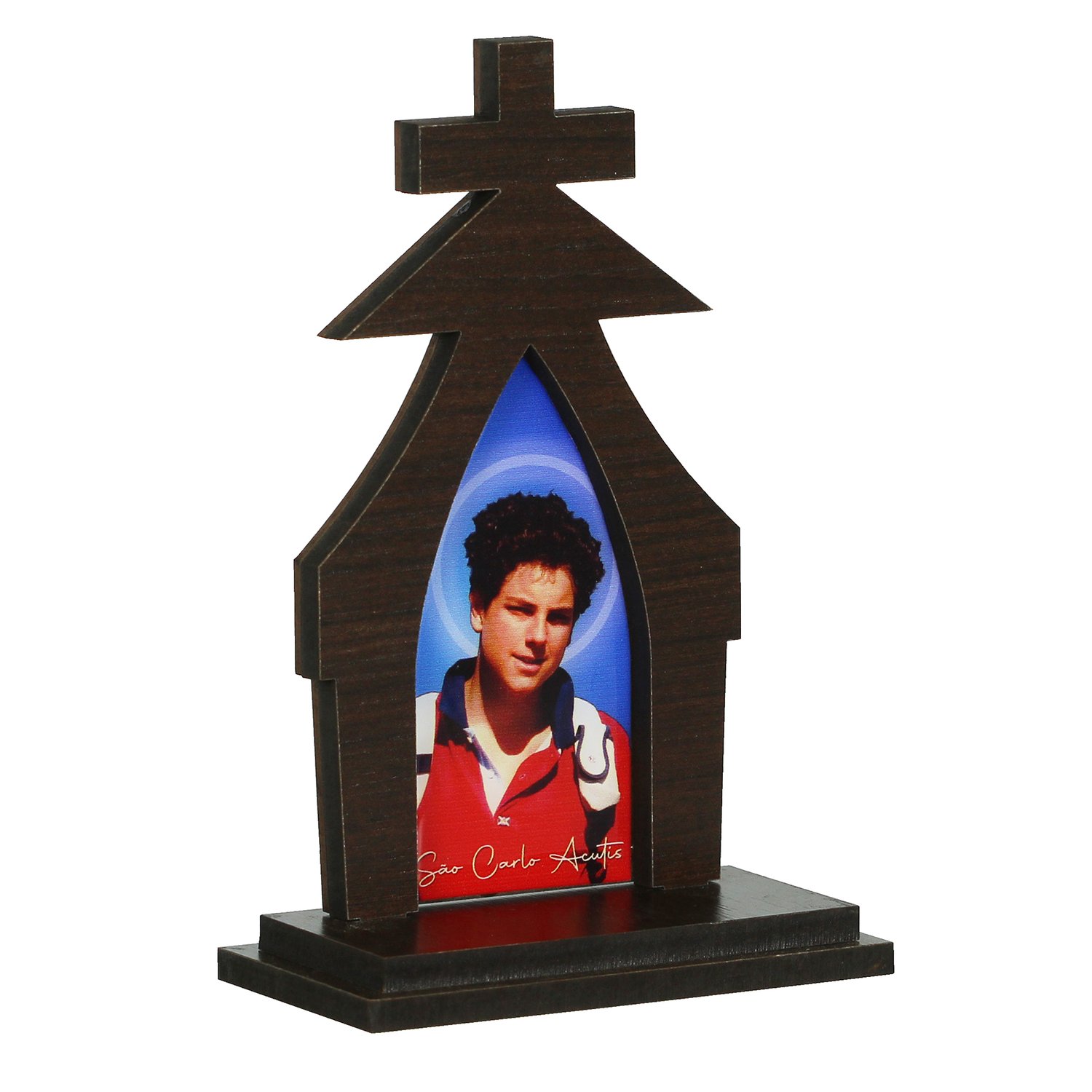 Capela em MDF revestido 6mm, com imagem resinada de São Carlo Acutis.