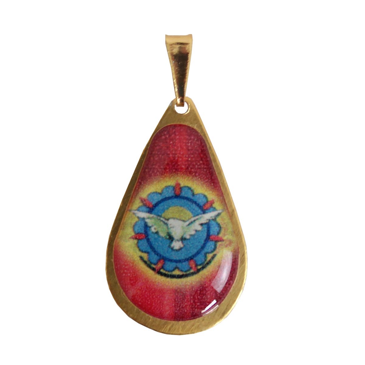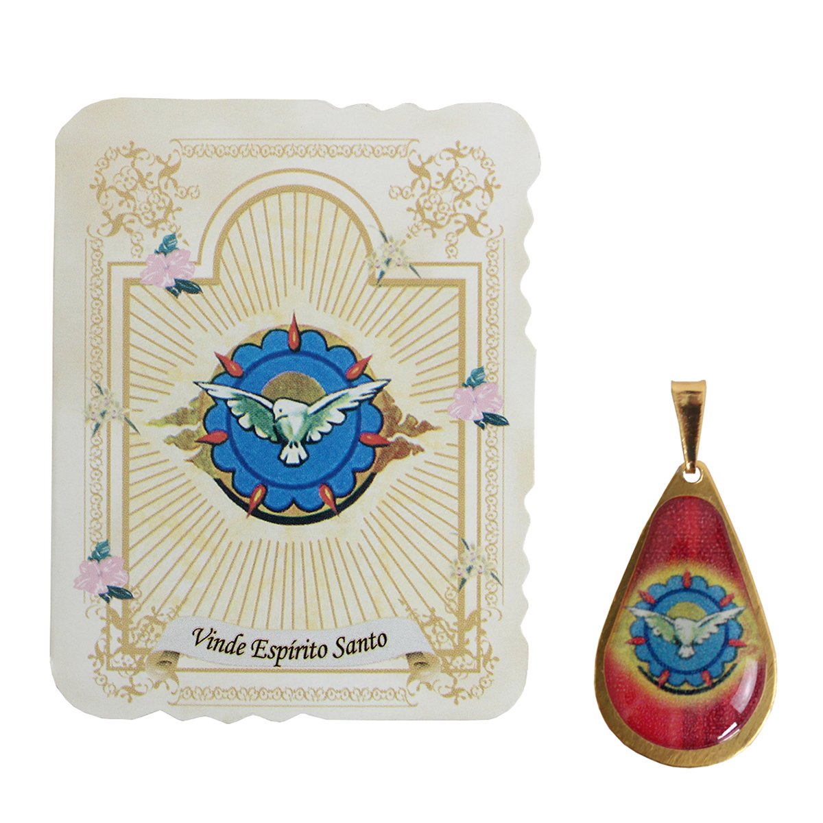 Cartão para lembrança de Divino Espírito Santo, acompanha medalha. Fechamento com velcro.