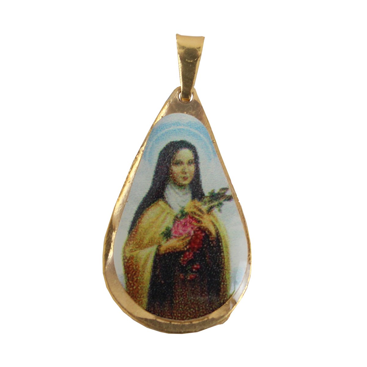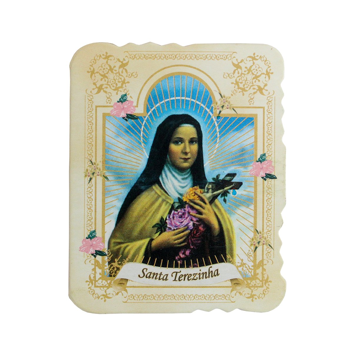Cartão para lembrança de Santa Teresinha, acompanha medalha. Fechamento com velcro.