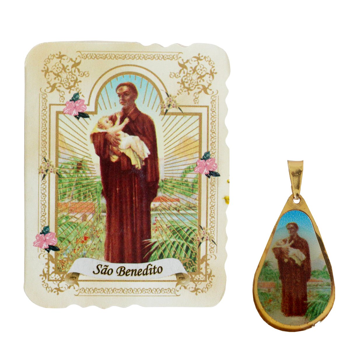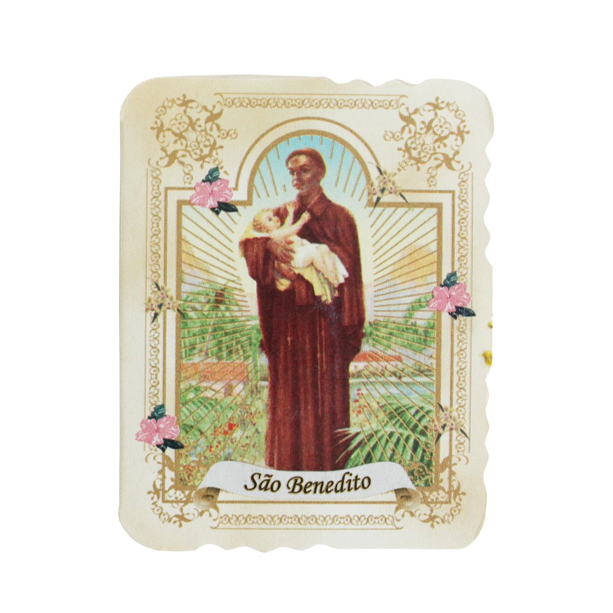 Cartão para lembrança de São Benedito, acompanha medalha. Fechamento com velcro.