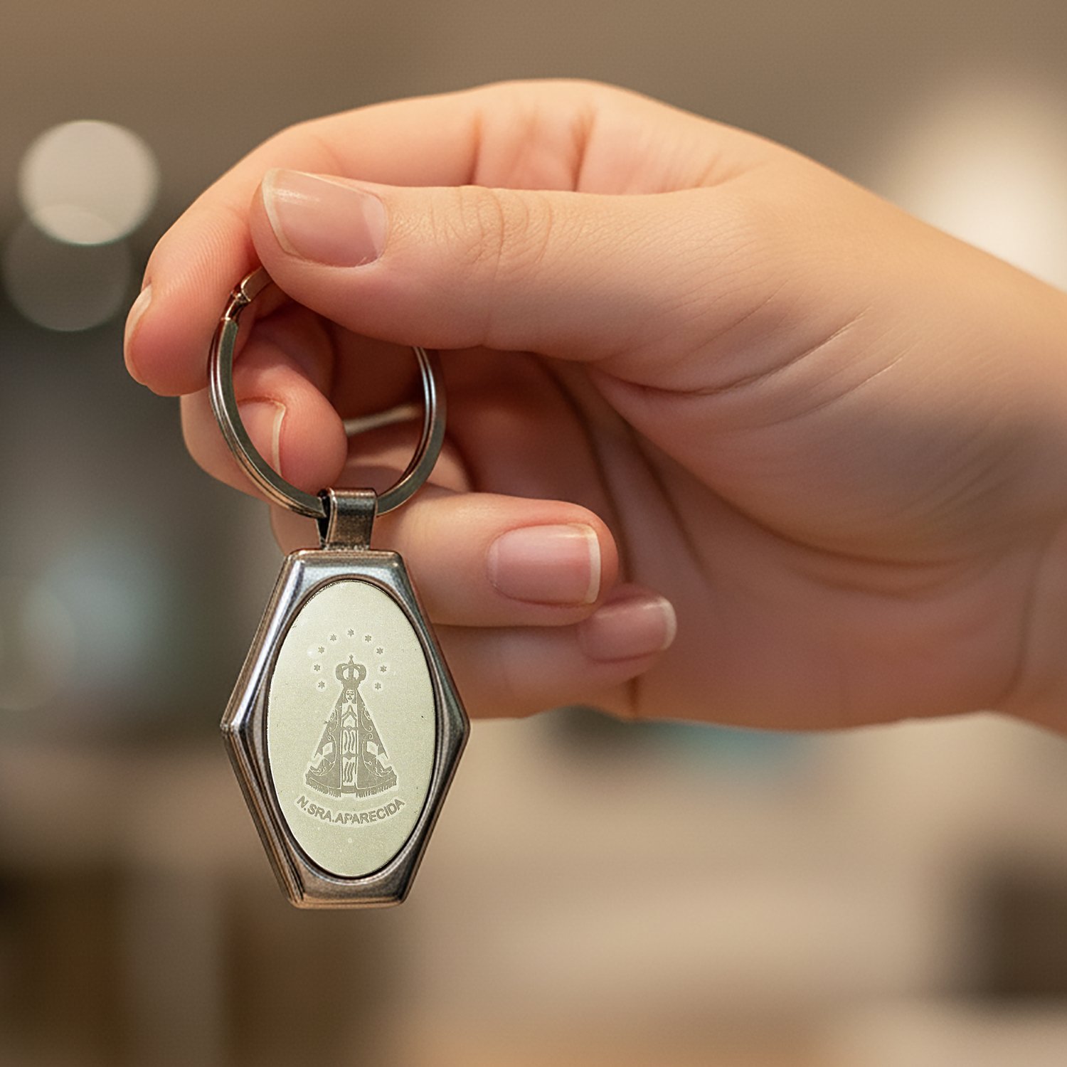 Chaveiro de Nossa Senhora Aparecida Inox Sextavado
