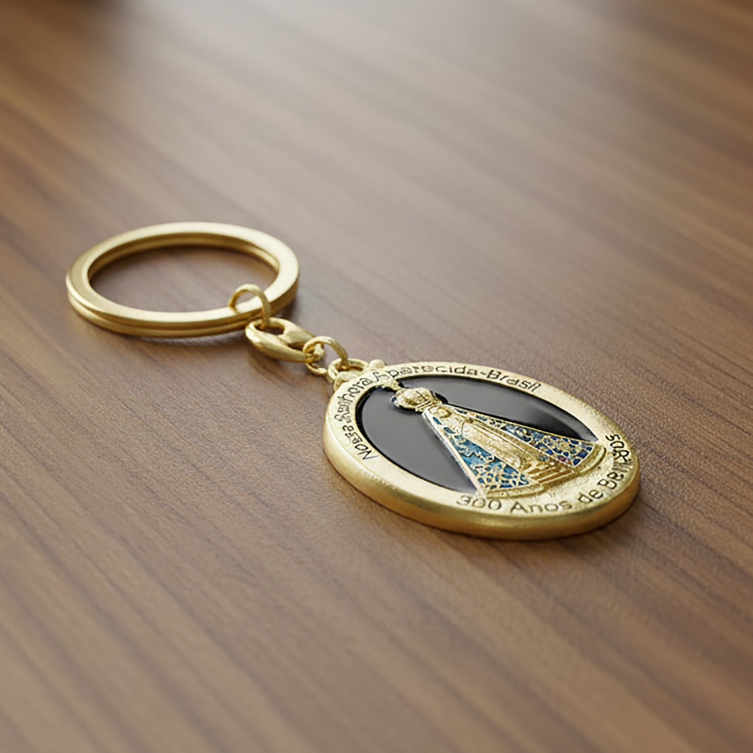 Chaveiro de Nossa Senhora Aparecida Oval Dourado Fundo Preto