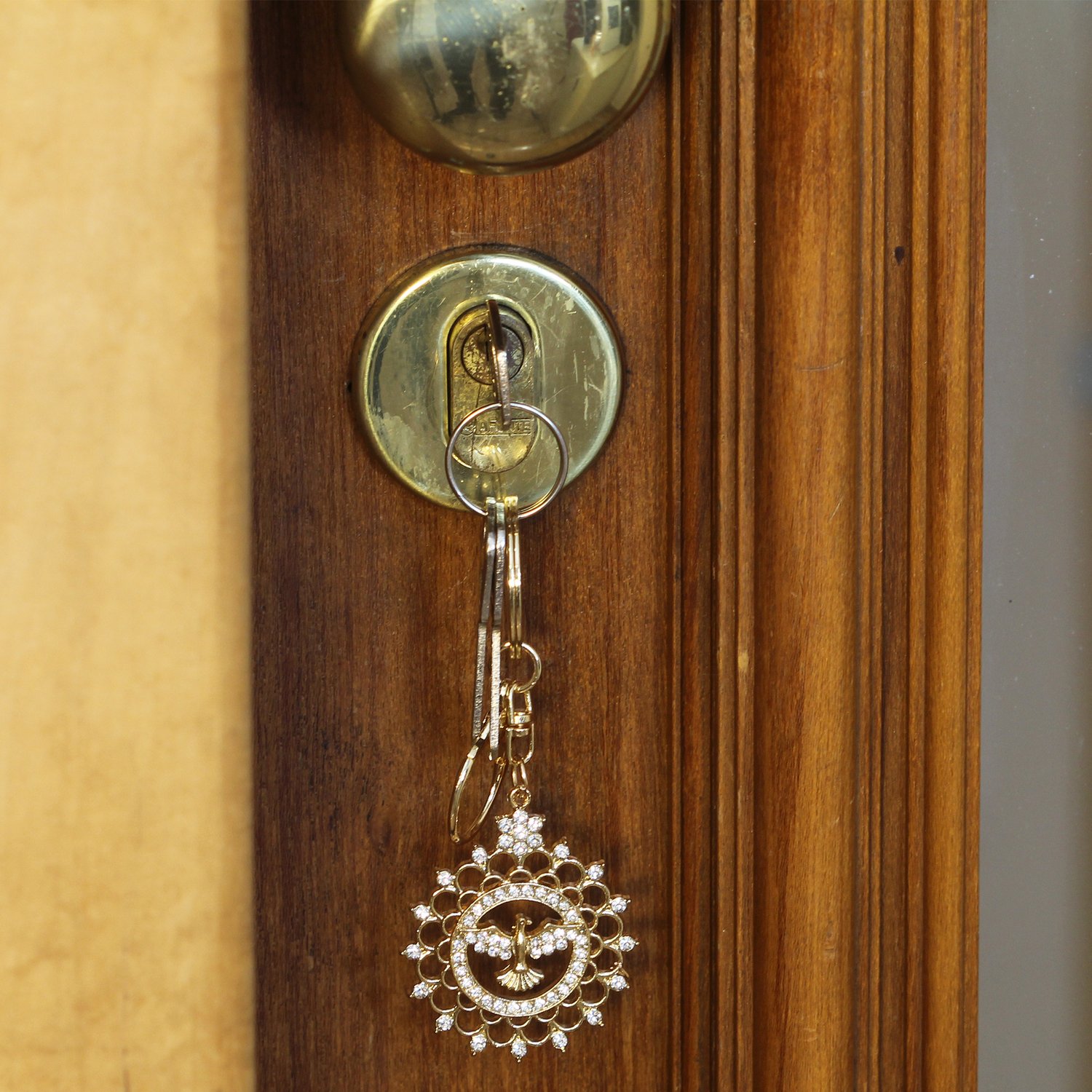 Chaveiro Divino Espírito Santo Redondo Dourado