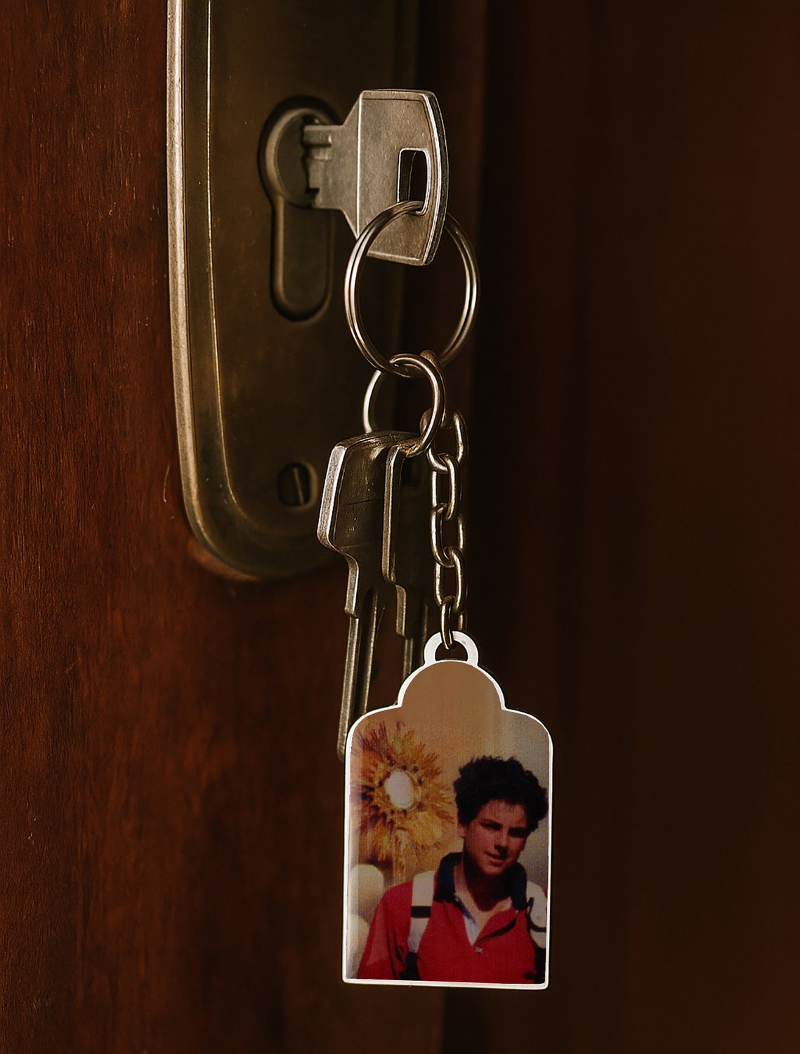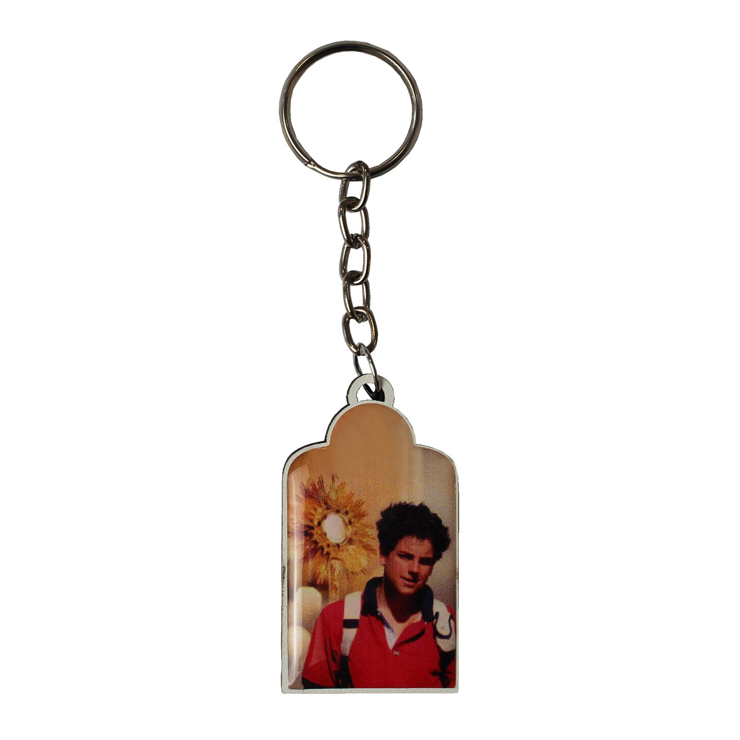 Chaveiro Madeira de São Carlo Acutis adesivo resinado