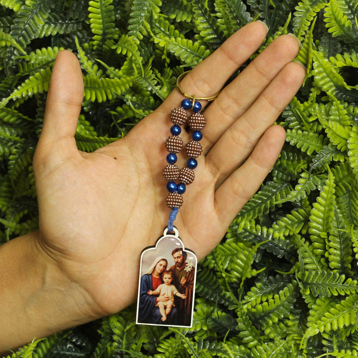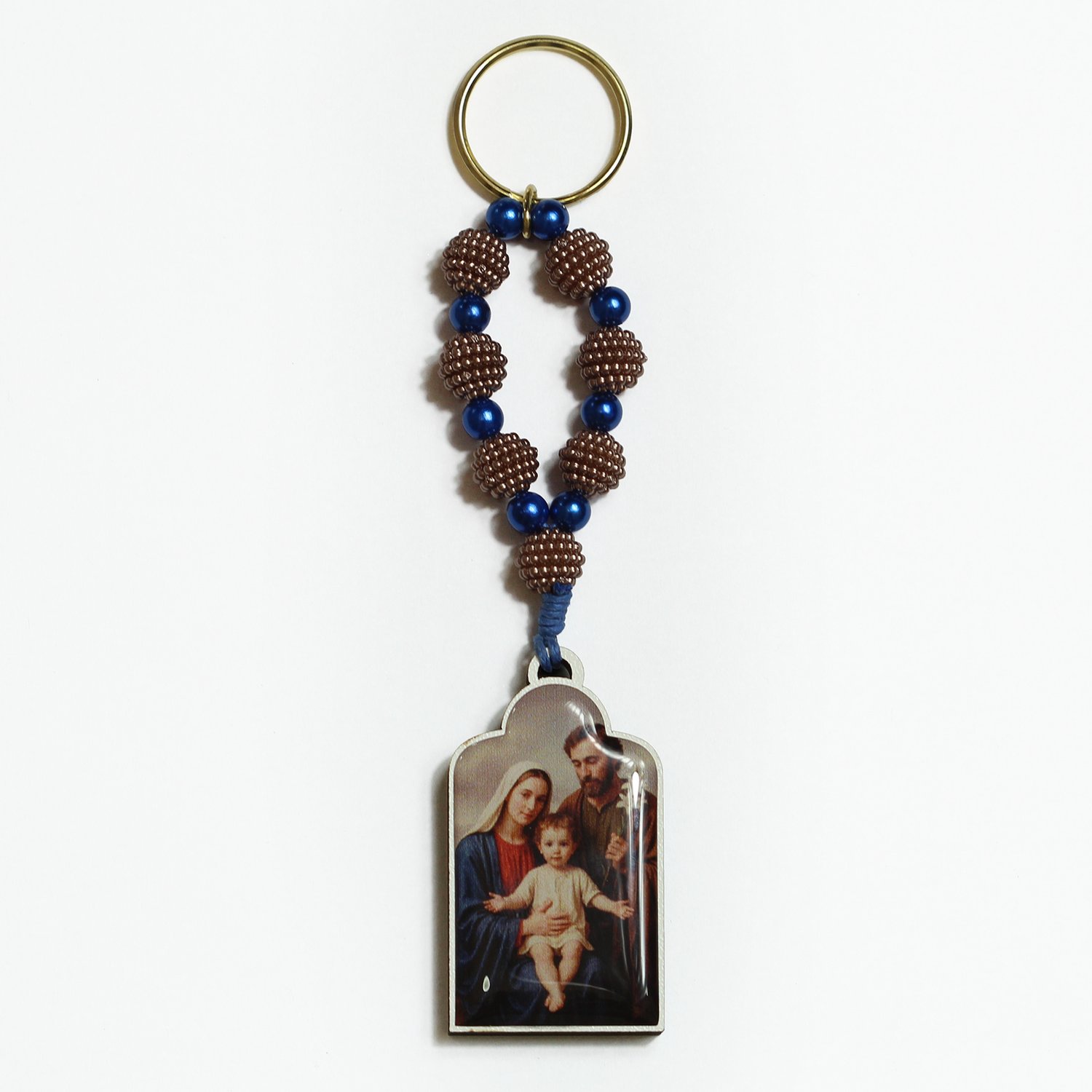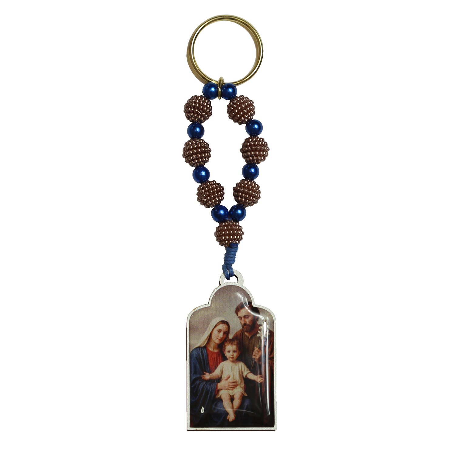 Chaveiro Madeira de Sagrada Família adesivo resinado Contas