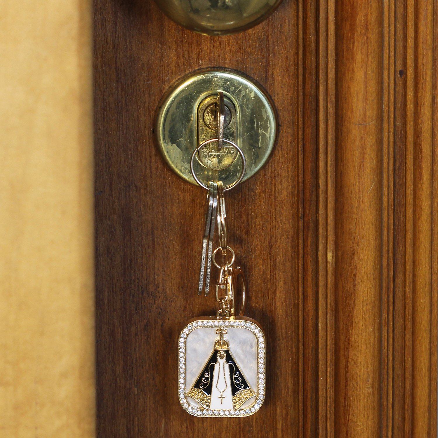 Chaveiro Nossa Senhora Aparecida Quadrado Dourado