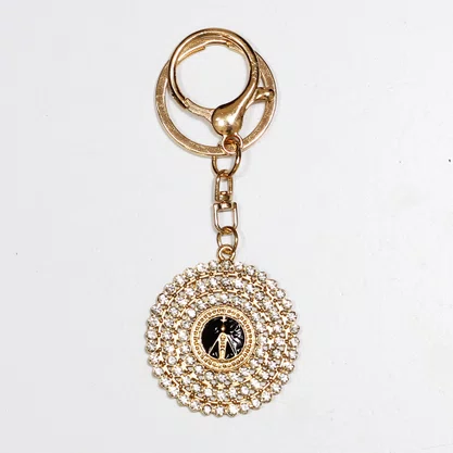 Chaveiro Nossa Senhora Aparecida Redondo Dourado e Preto