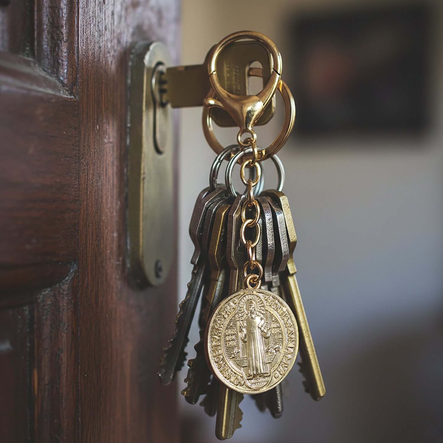 Chaveiro São Bento Medalha Dourado Mosquete