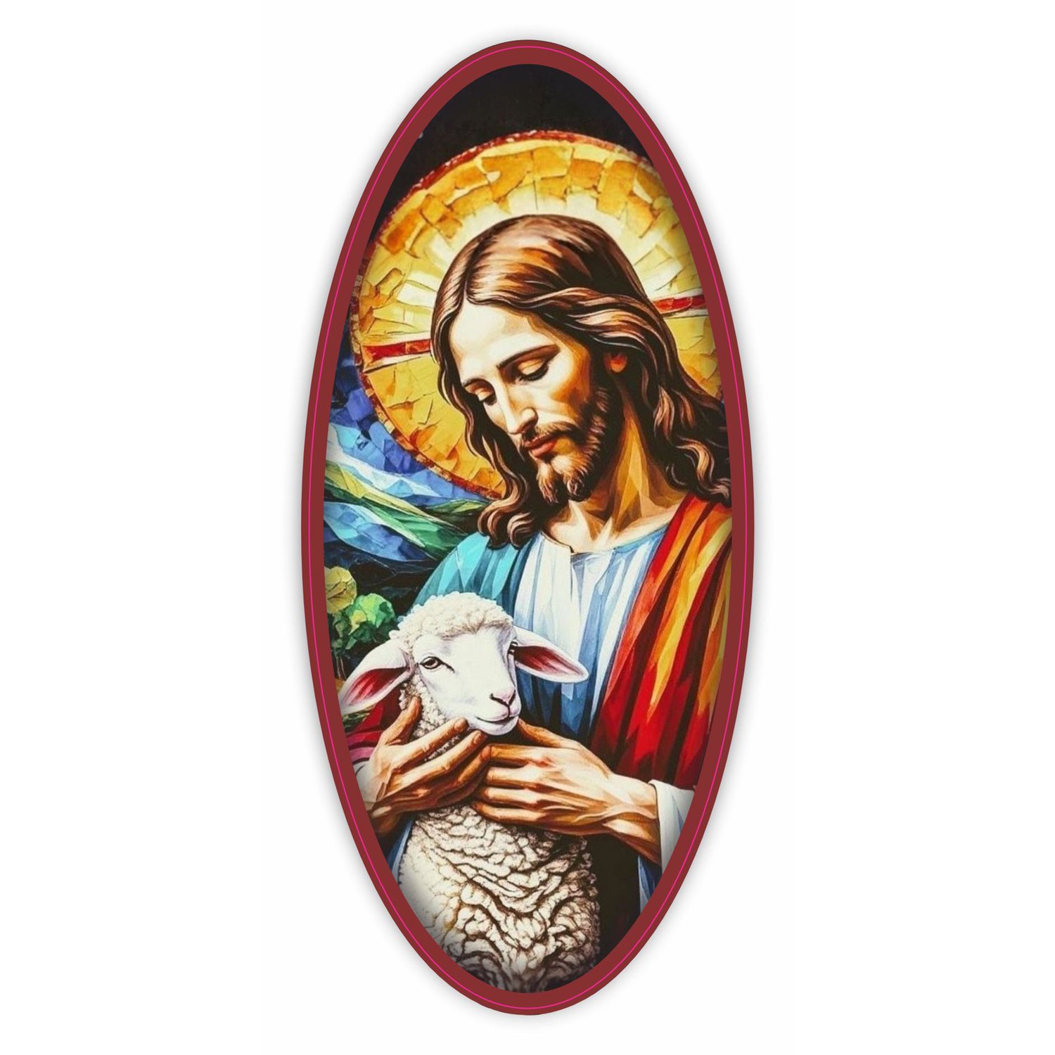 Estampa Oval em resina nacional e acabamento em adesivo resinado epóxi que garante brilho cristal e resistência.