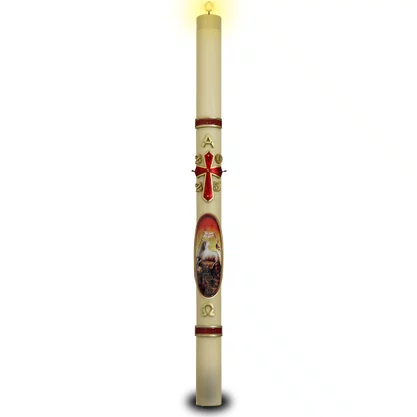 Círio Pascal tradicional, produzido em parafina nas cores cera, amarela ou branca.