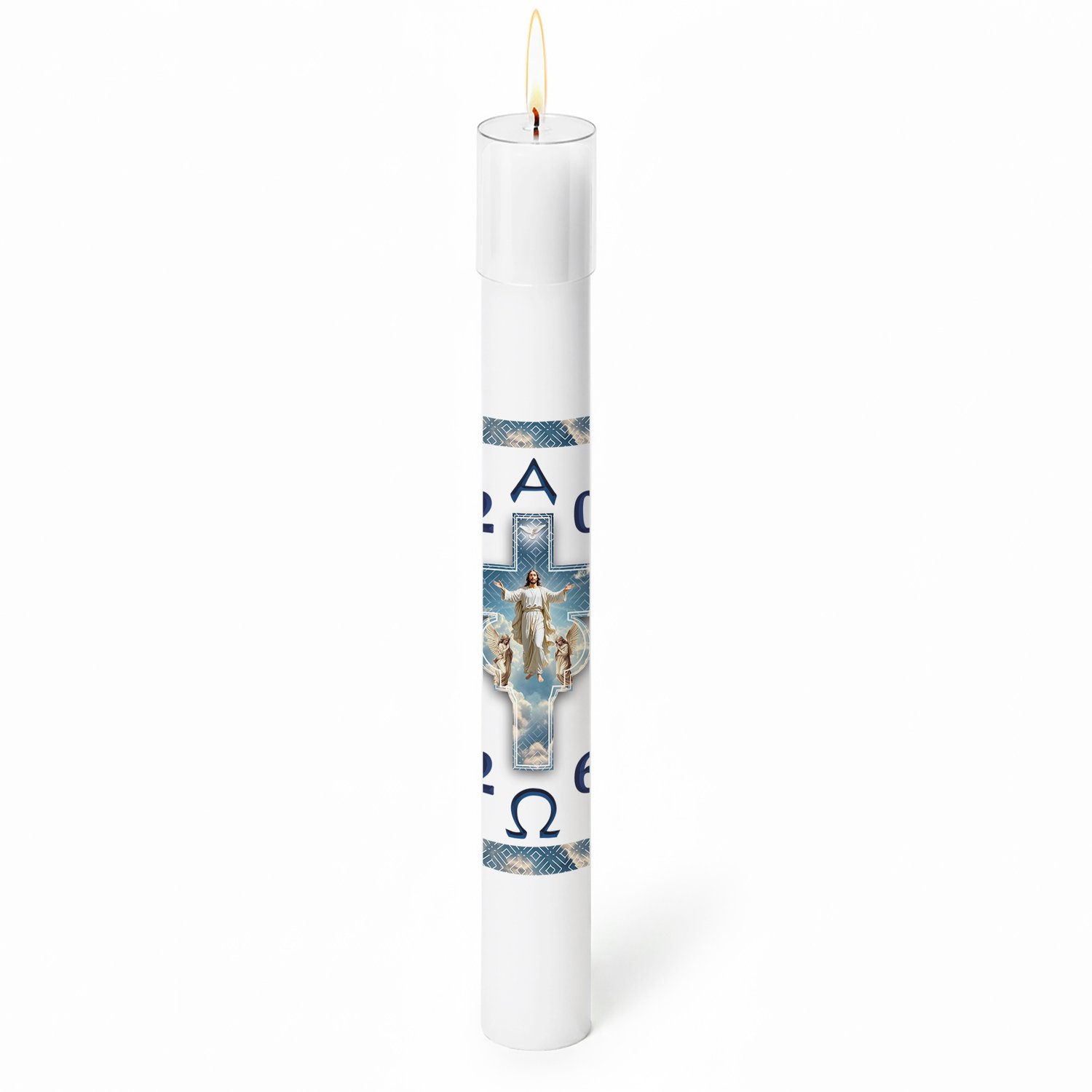 Círio Pascal Adesivado Ressuscitado Anjo Adoradores 2026 - 75 X 7 cm Branco