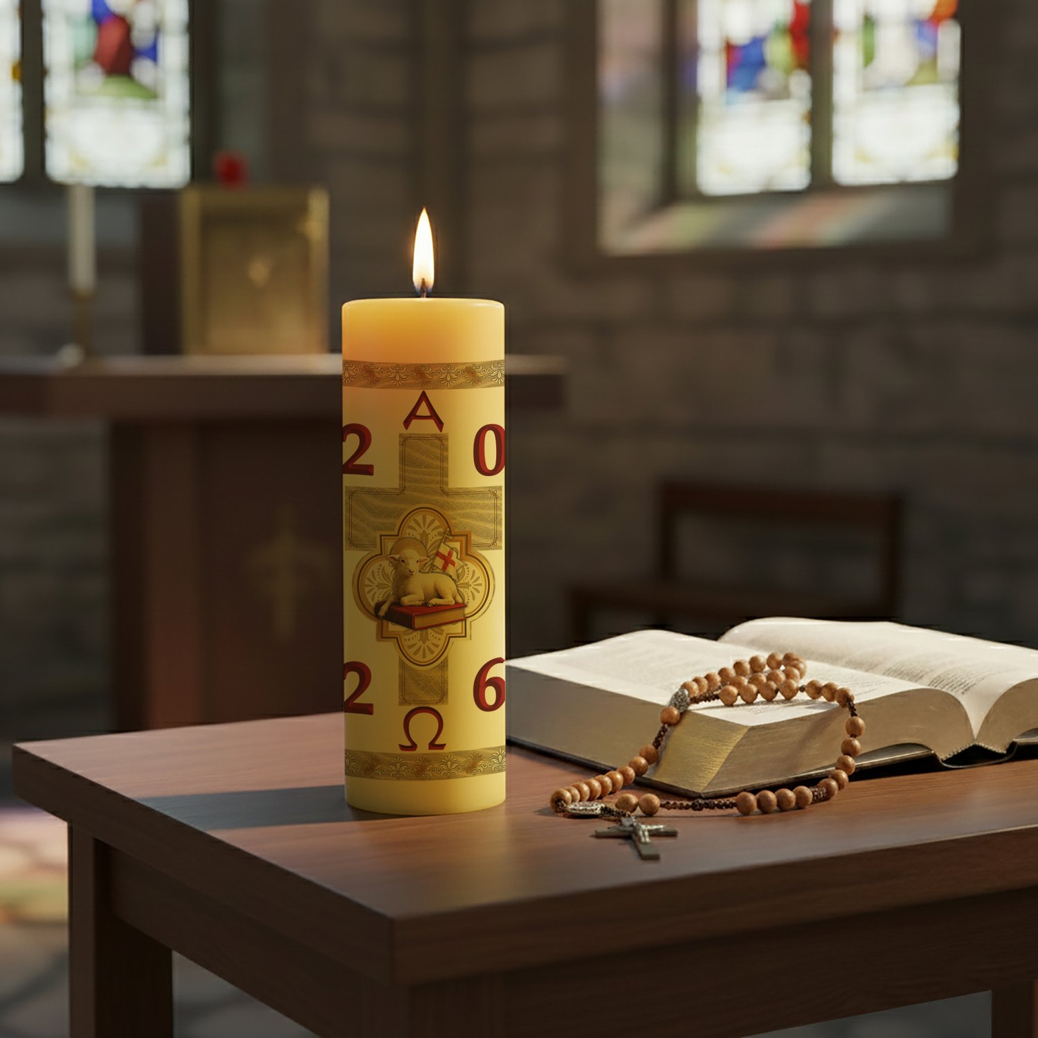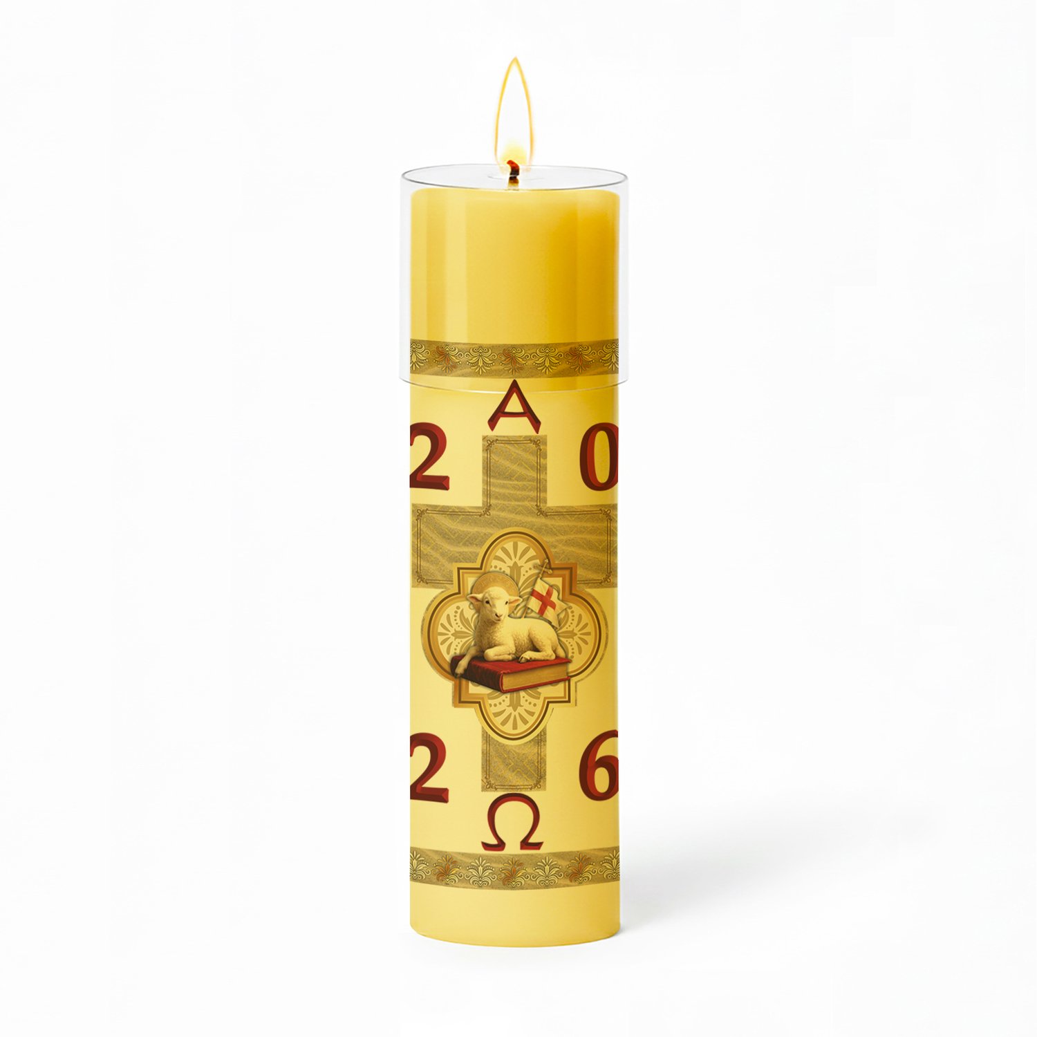Círio Pascal Adesivado Cordeiro Marfim 2026 - 30 X 7 cm Amarelo