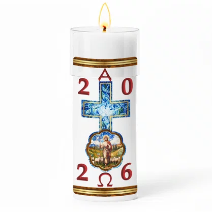 Círio Pascal Adesivado Bom Pastor 2026 - 30 X 9 cm Branco