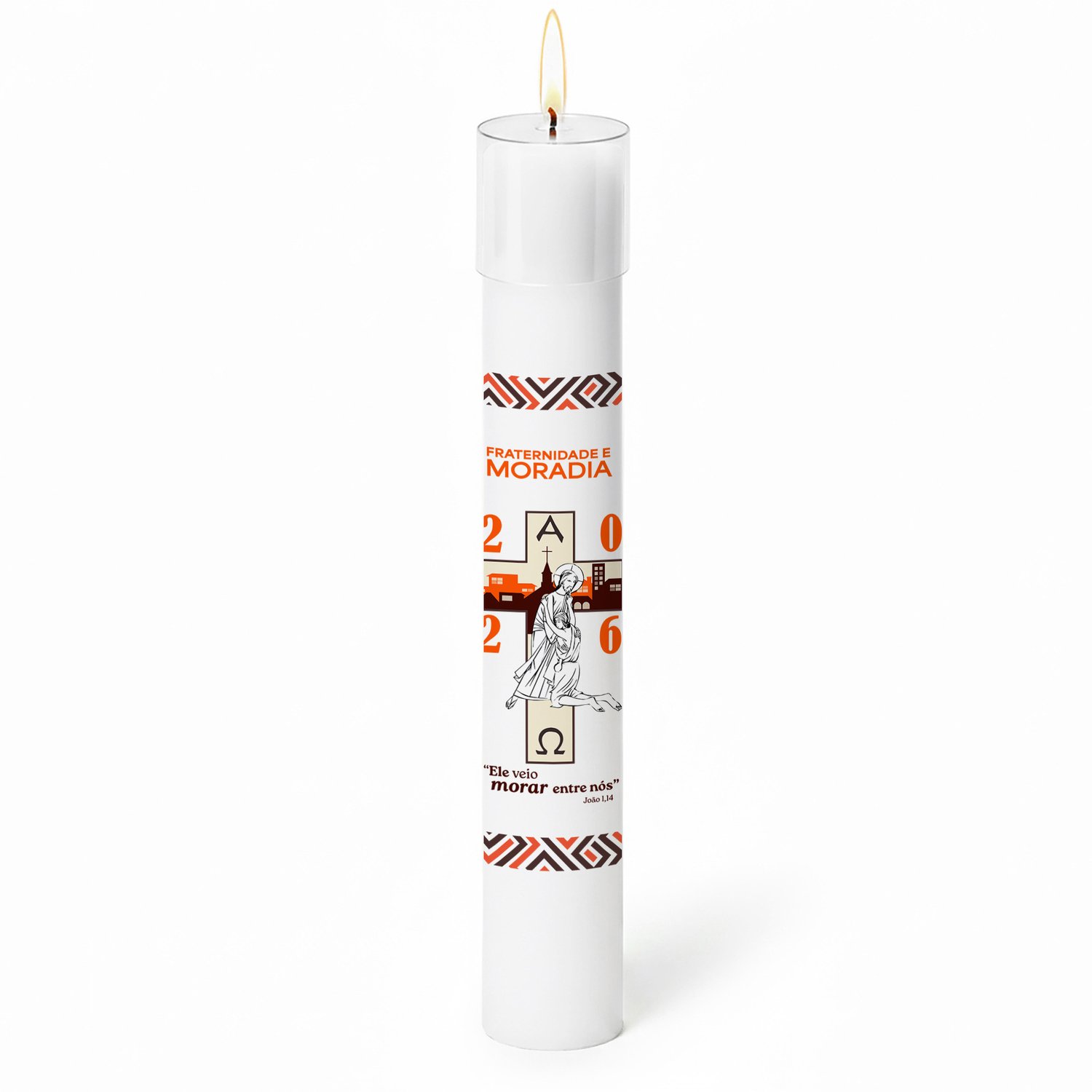 Círio Pascal Adesivado Campanha da Fraternidade 2026 - 90 X 9 cm Branco
